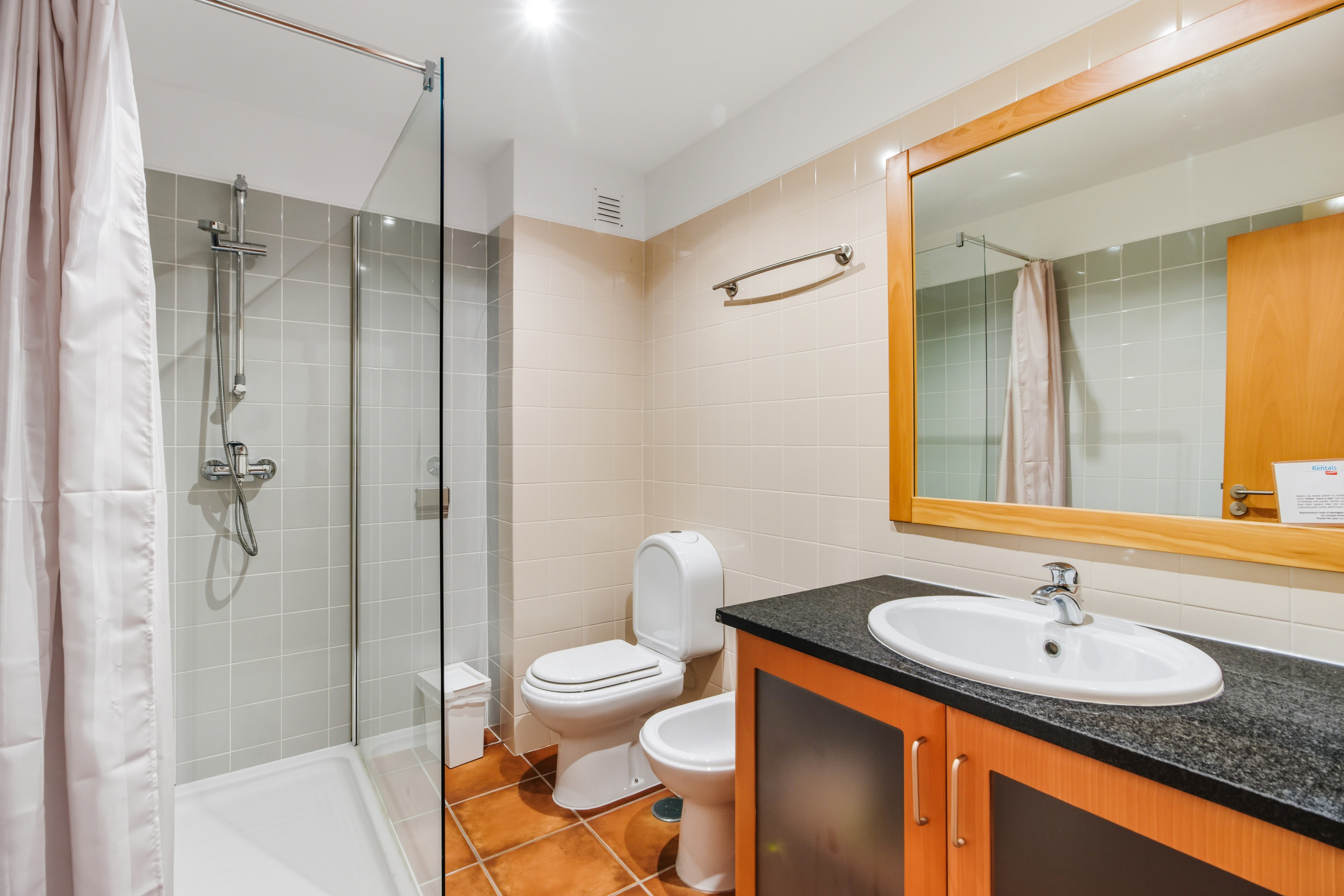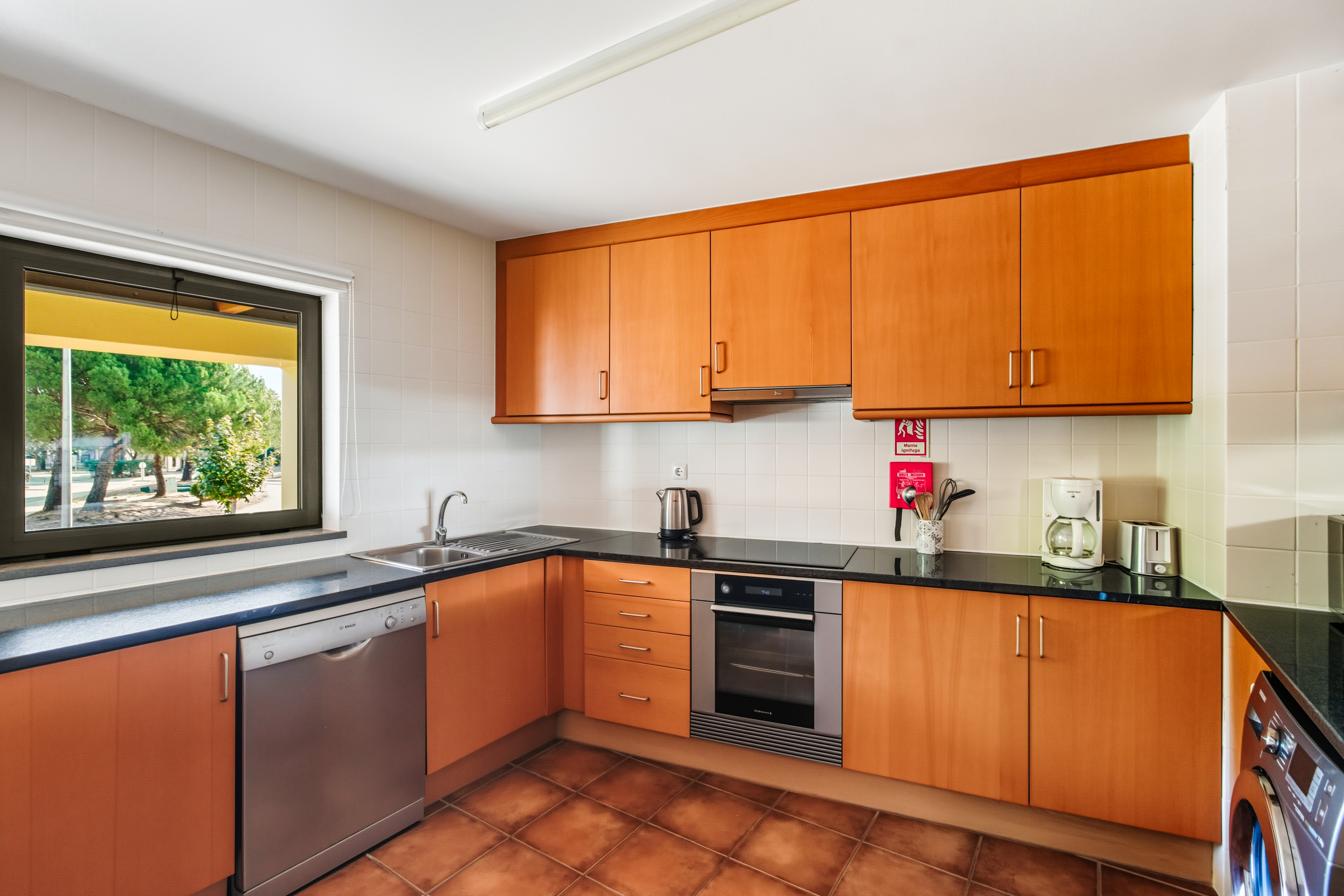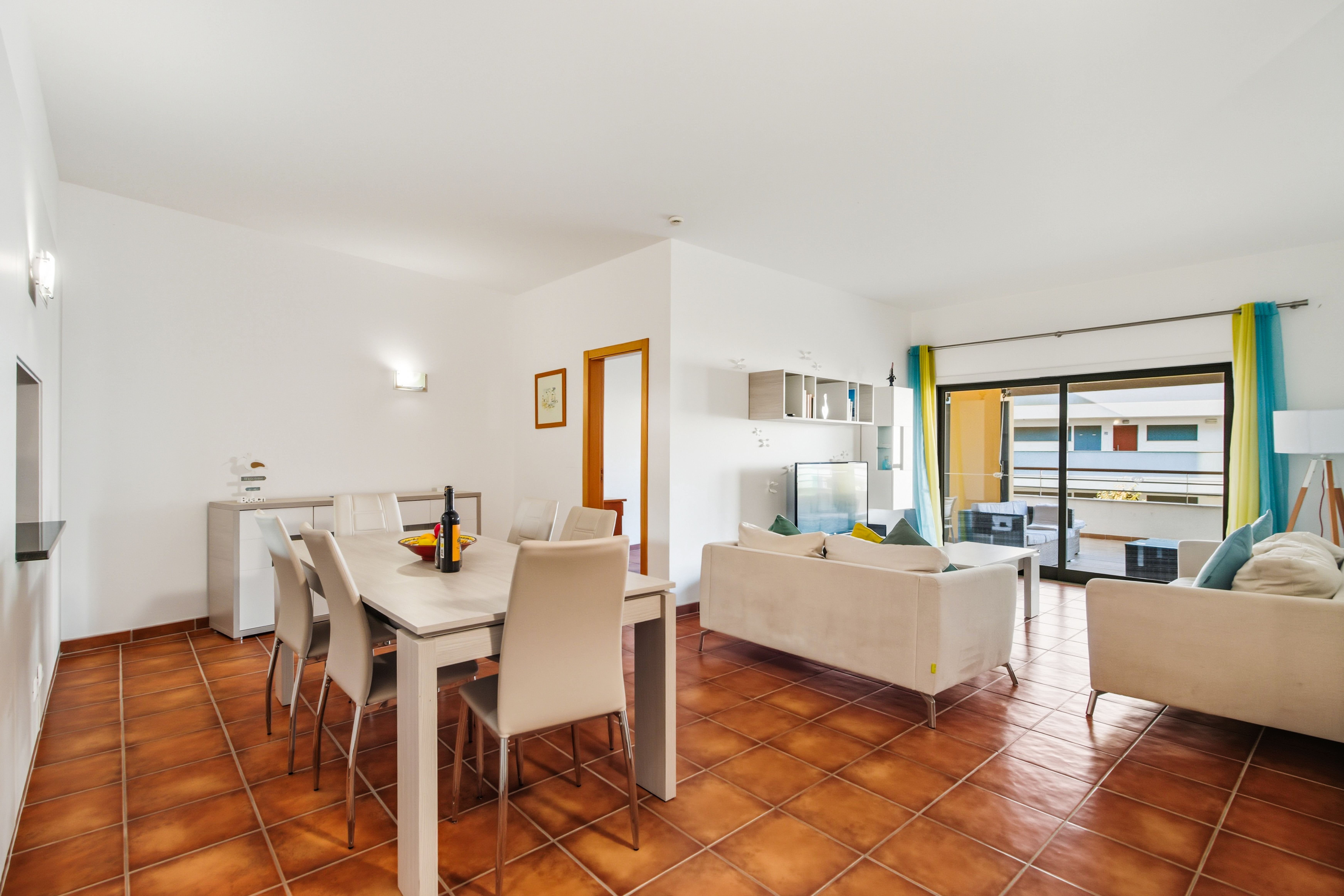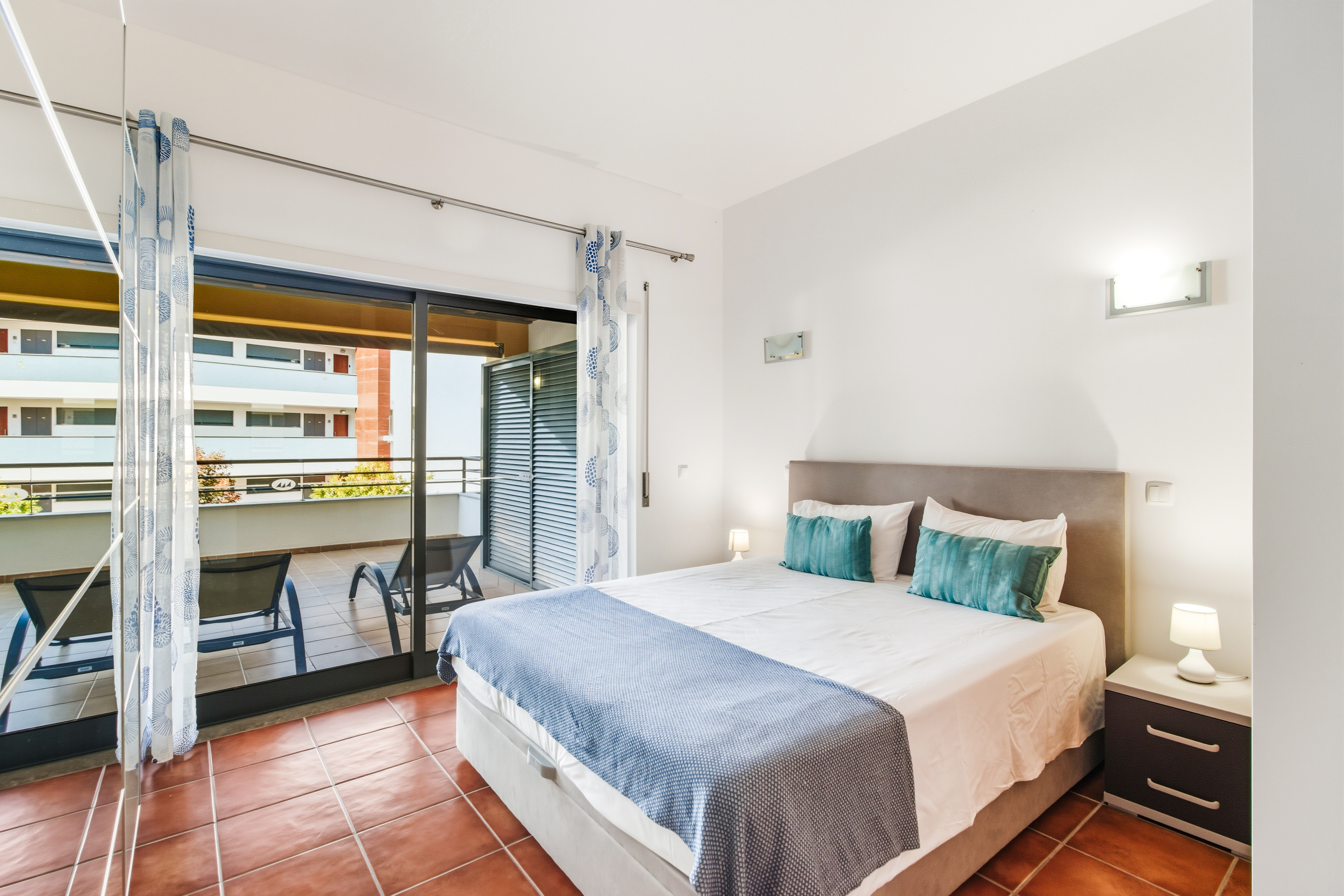 From the living room, the master bedroom, and the third bedroom there is direct access to a large balcony facing southwest, with sunlight till the end of the day which is ideal for “al fresco” dining. The master bedroom has a double bed, the second bedroom has 2 single beds, and the third bedroom has a sofa bed.