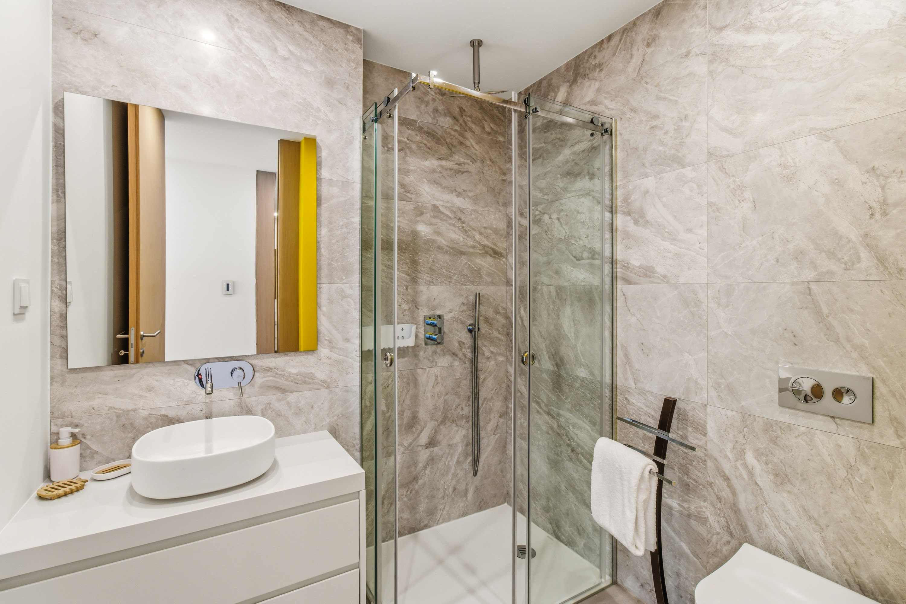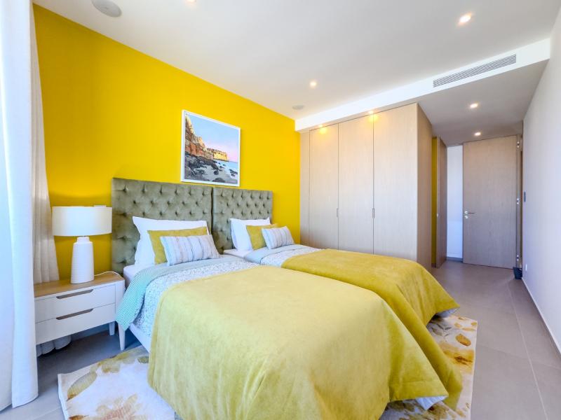 • Yellow bedroom: The twin bedroom with en-suite shower room, build-in wardrobe and as well access to the mountain view balcony at the rear of the building.