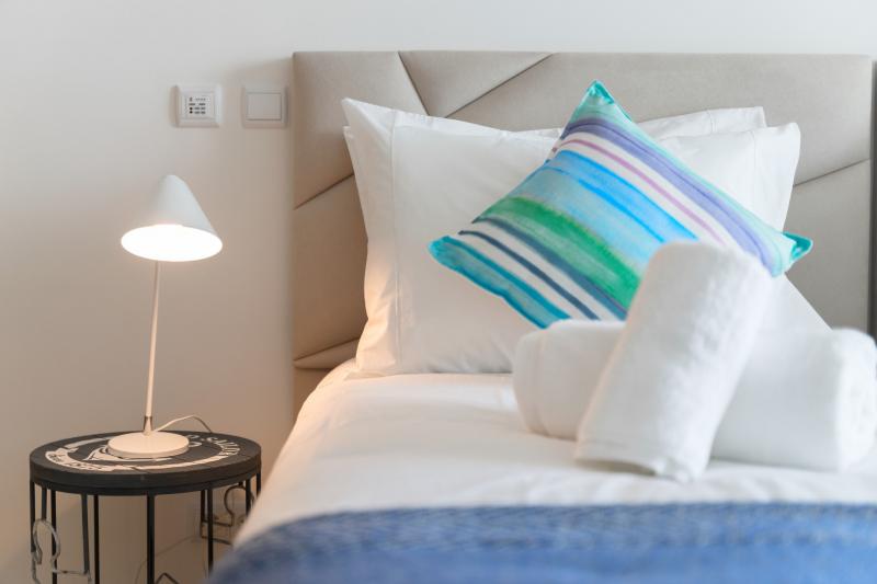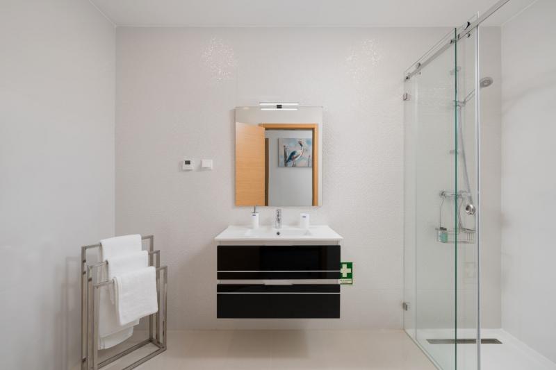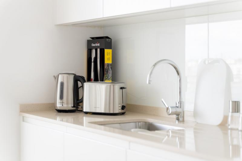 The apartment includes everything you need to make your stay as enjoyable and relaxing as possible. There is a living room with comfortable sofas to watch a movie and a bespoke open-plan kitchen with a breakfast bar, ideal for getting together in the morning and enjoying a coffee. It is complete with top-of-the-range kitchen appliances including a coffee machine, cooker, microwave, toaster, kettle and kitchen utensils. The fully equipped kitchen is great for those who love to whip up a delicious treat.