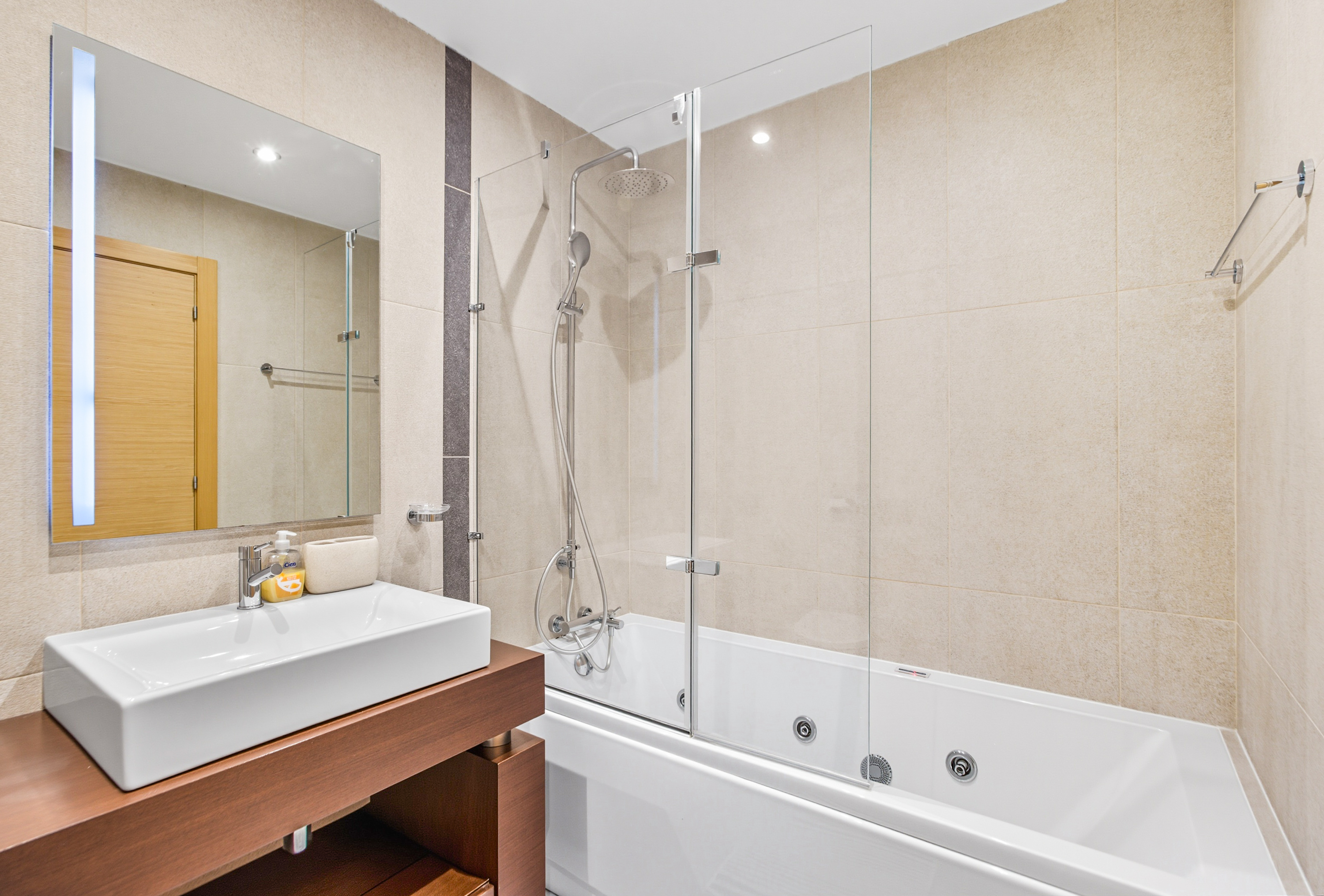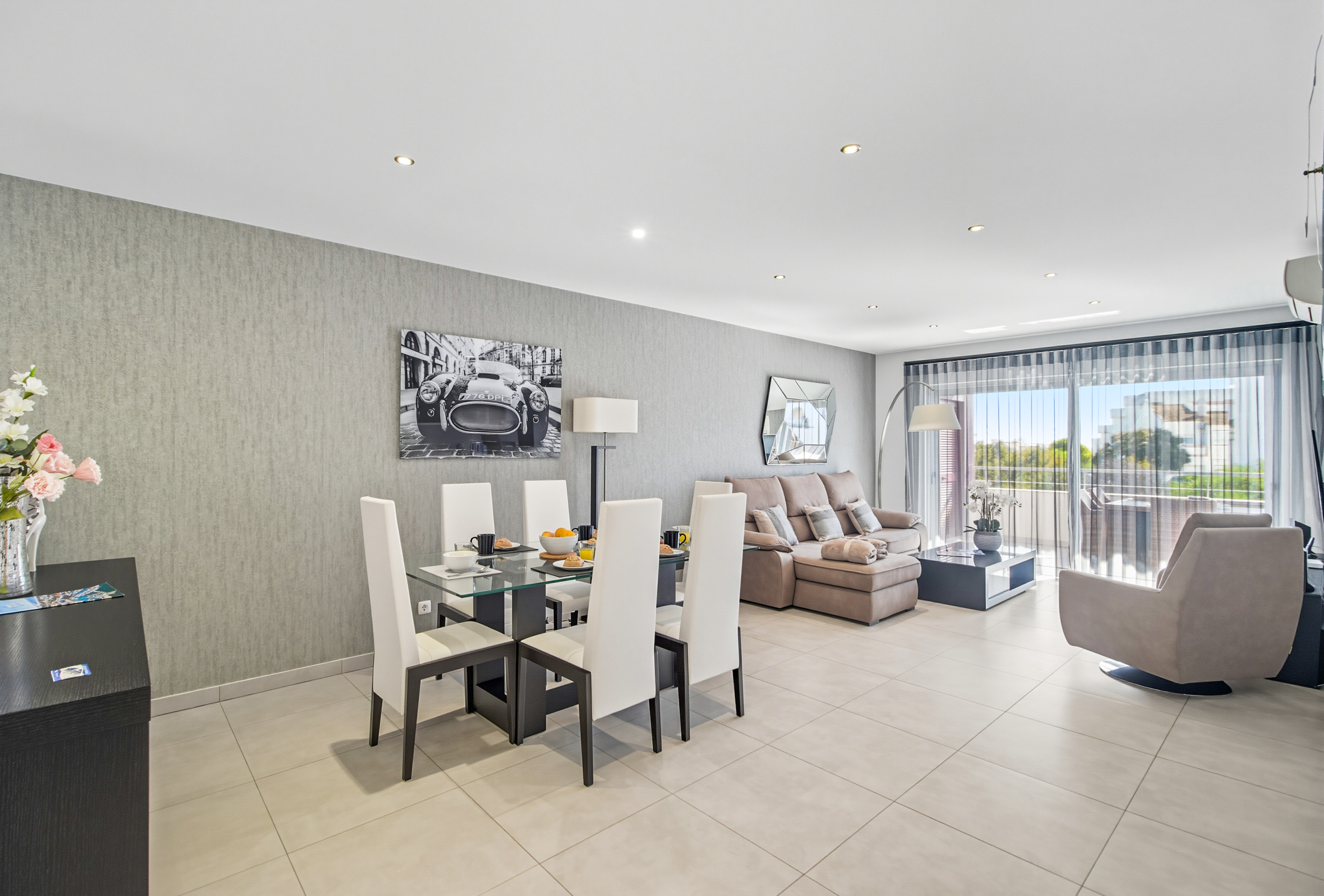 There is a communal pool, along with a separate children’s pool and a gym is located in the apartment block for the use of guests.