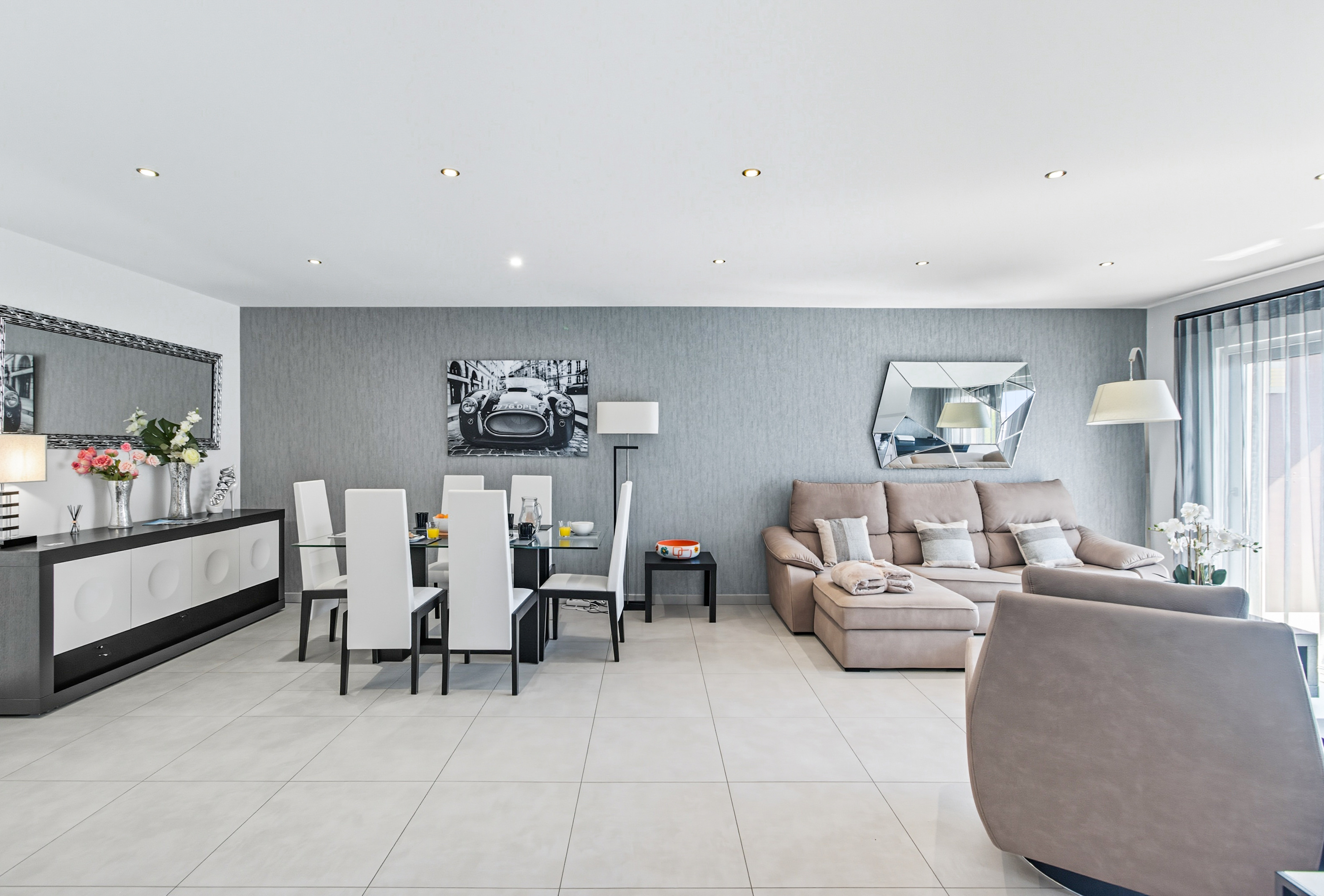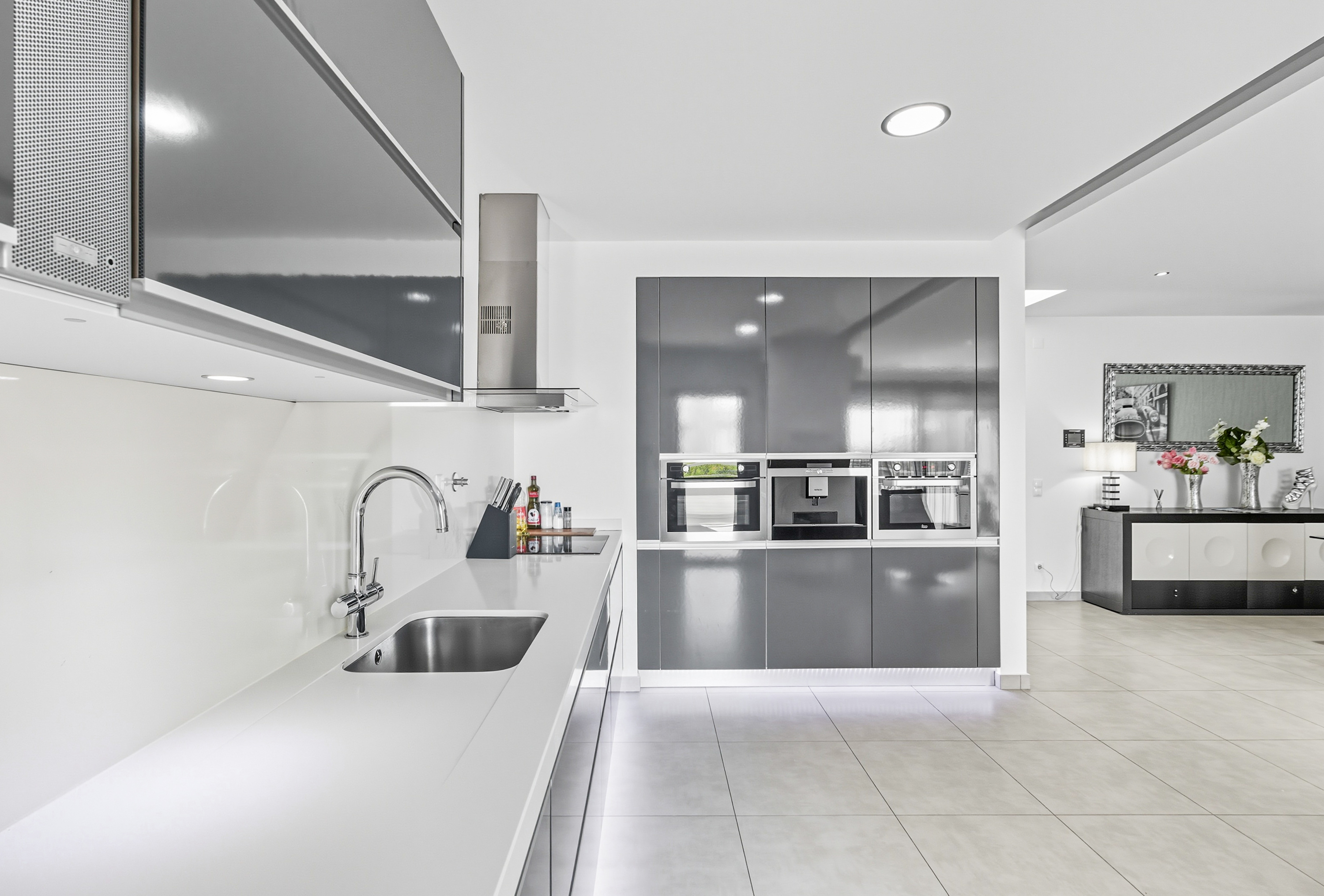 The kitchen is fully equipped with coffee machine, dishwasher, washing machine, microwave, built-in oven, ceramic hob and a fridge freezer.