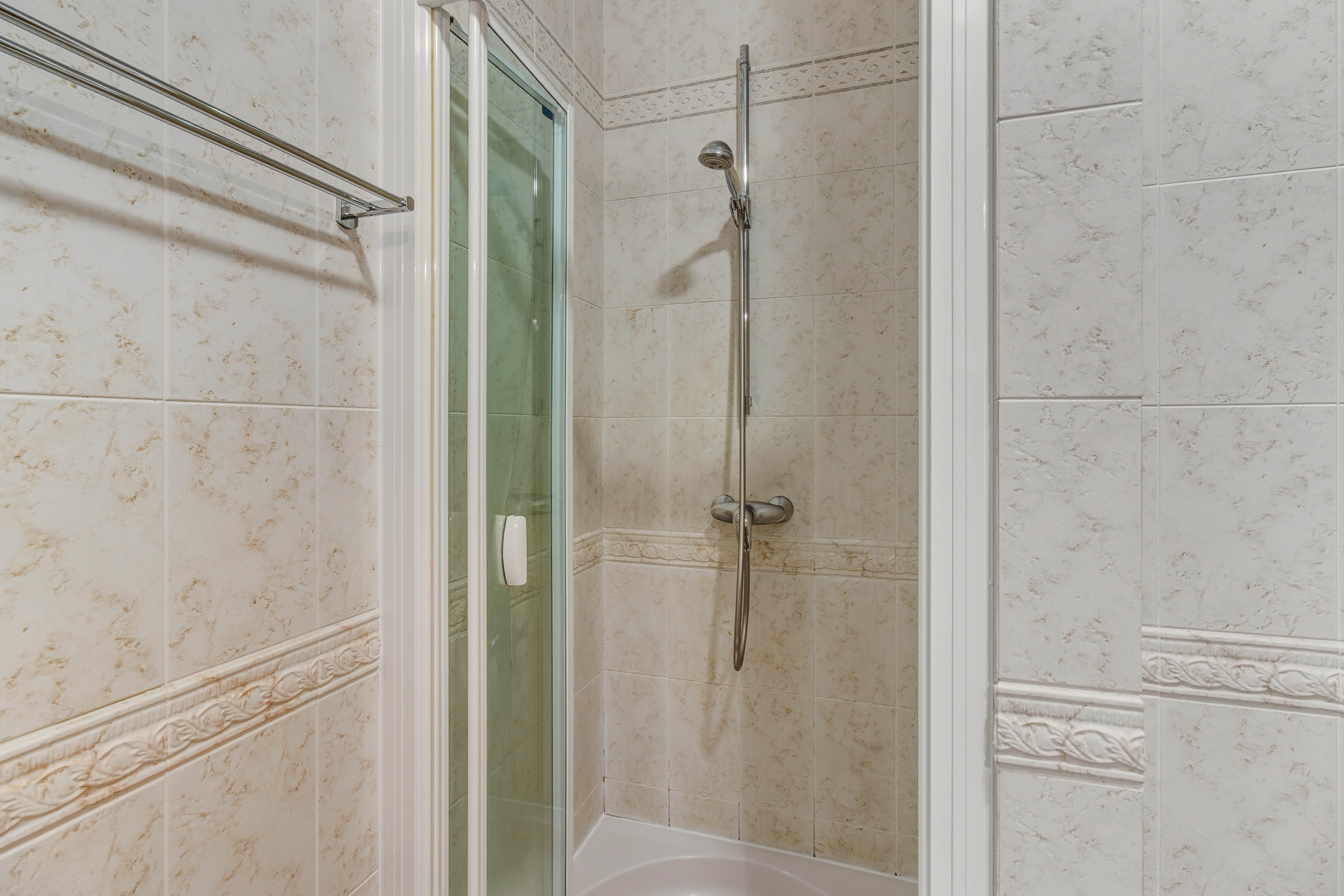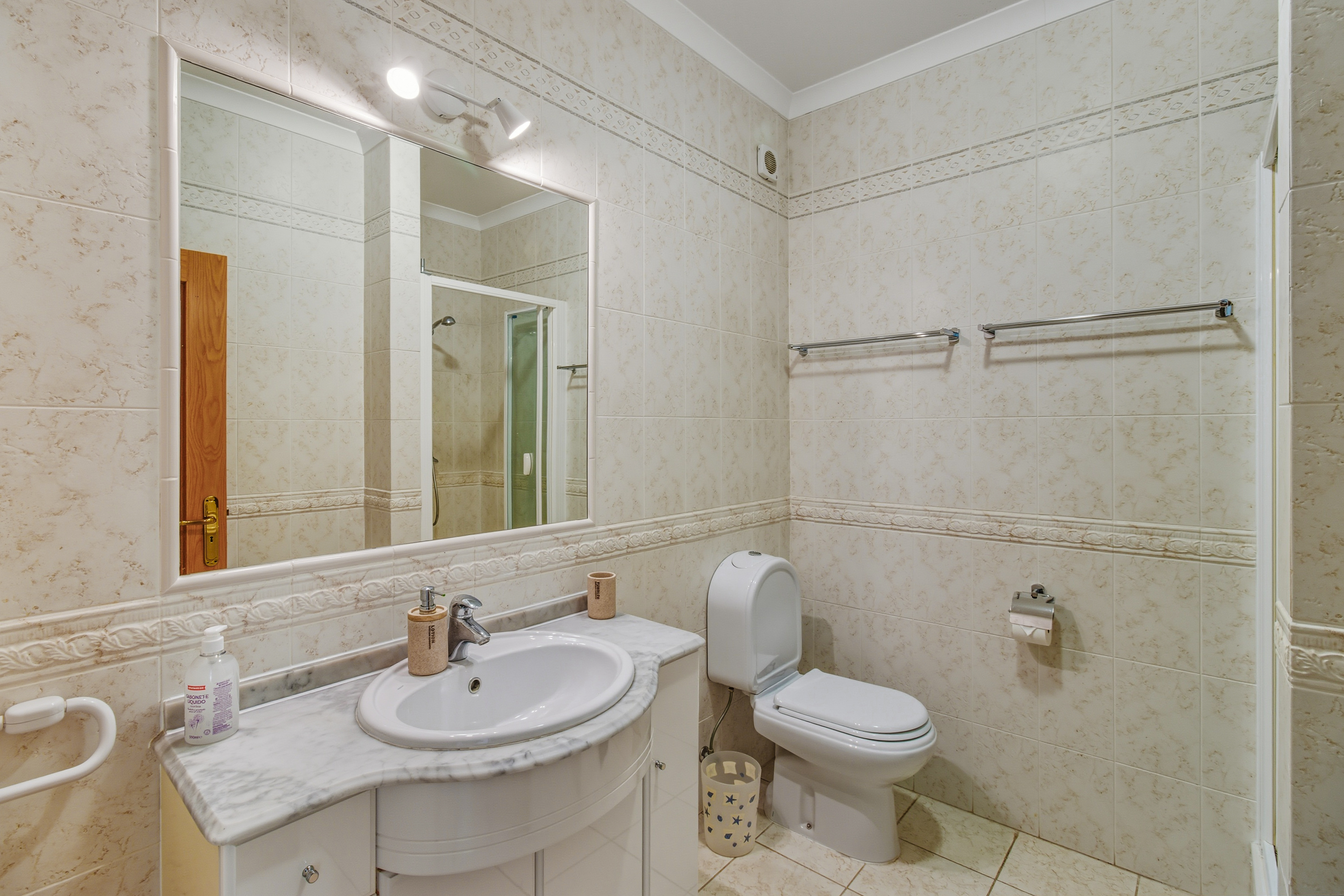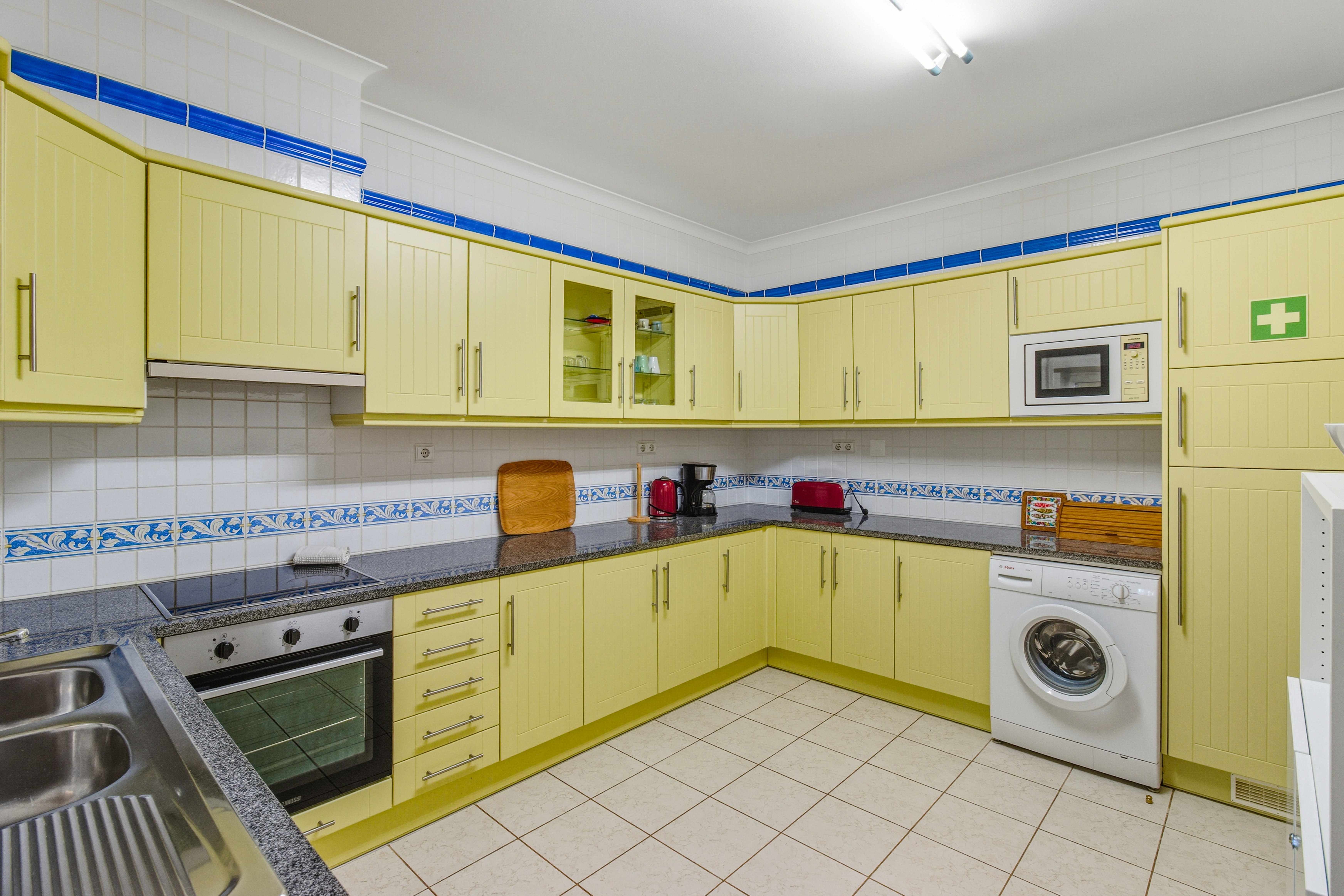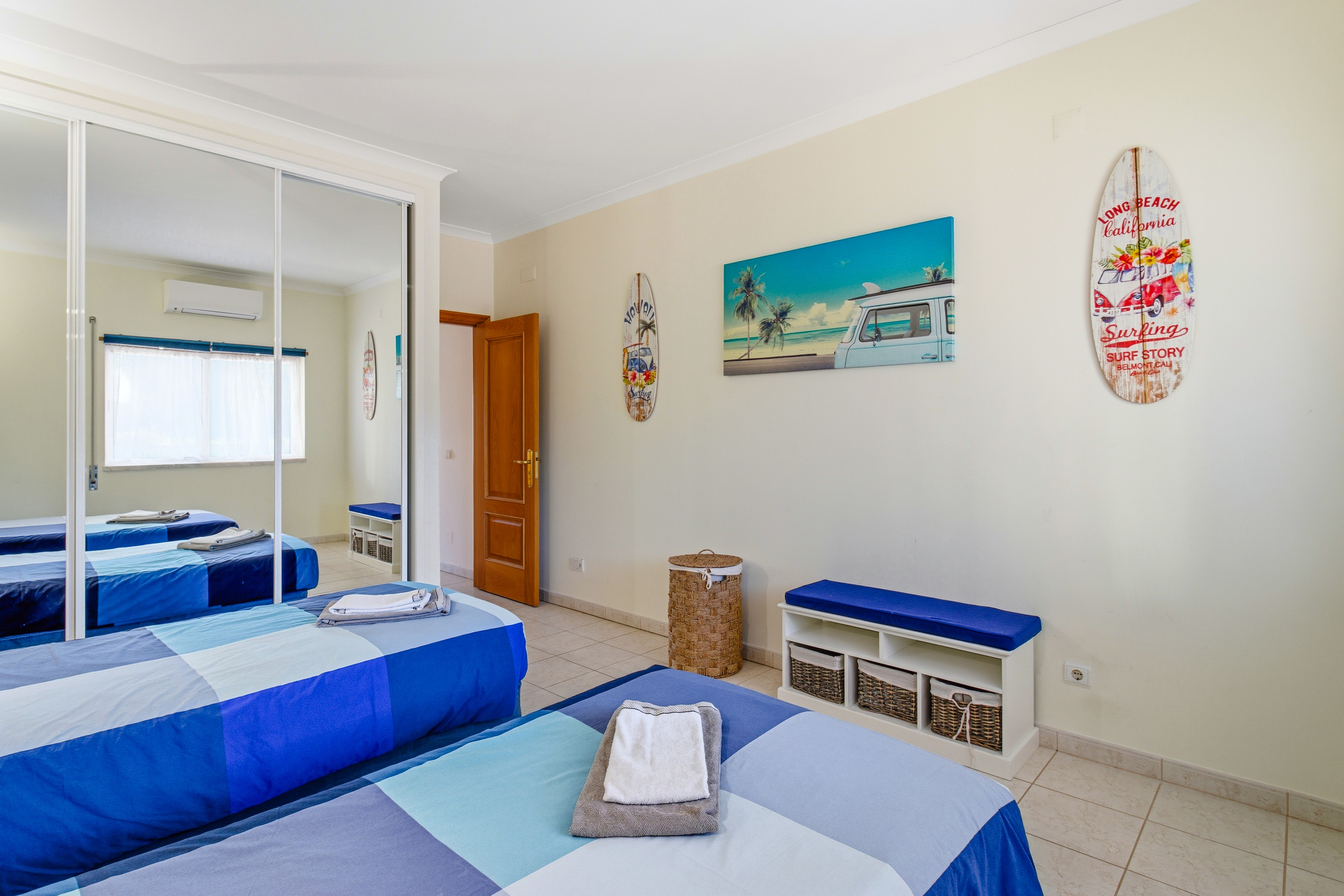 Both bedrooms are large, the master bedroom with a double bed boasts lovely sea views, and the 2nd bedroom has 2 single beds.