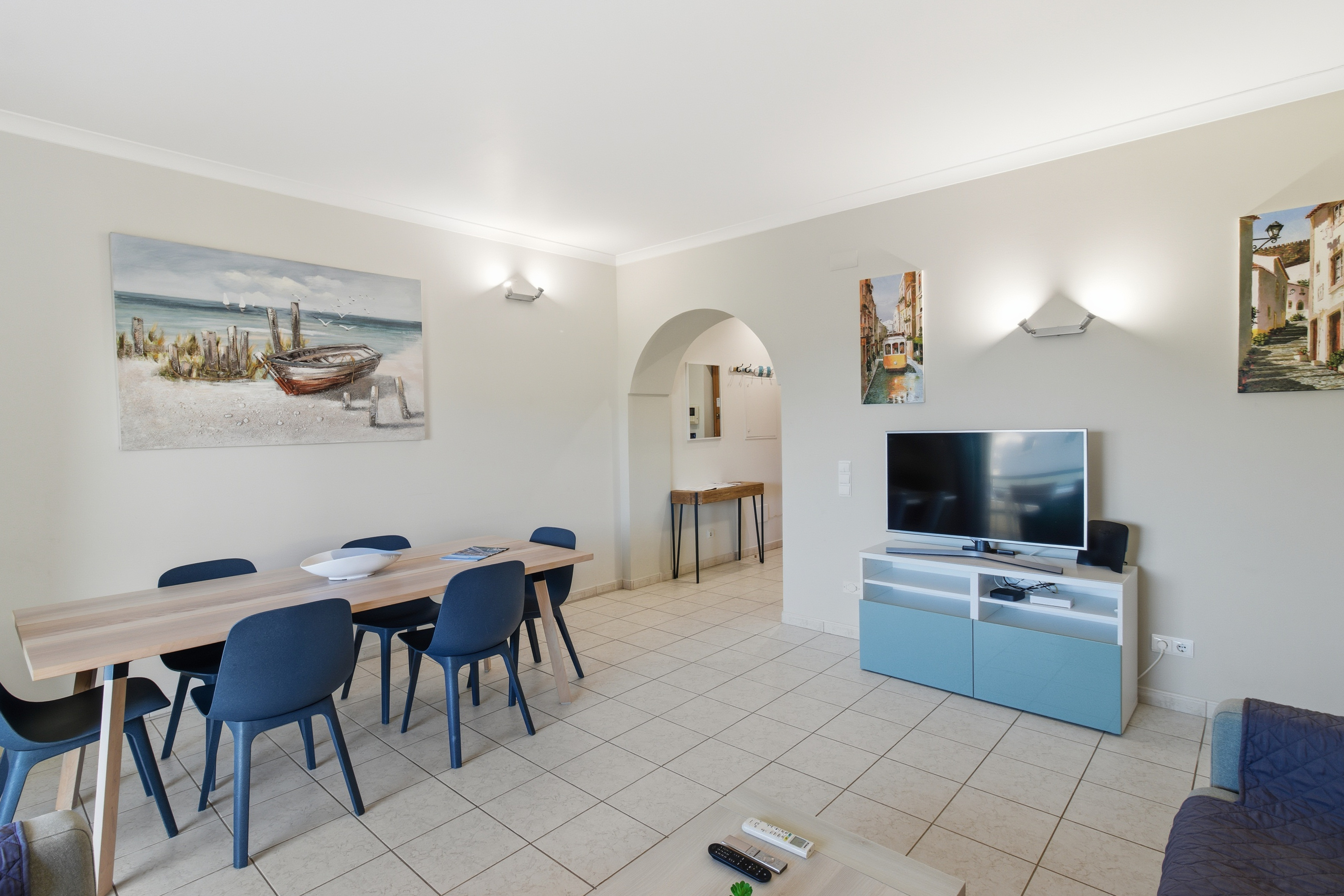 The living room is great size and leads out to a dining balcony ideal for those early evening drinks or simply enjoying the views over the swimming pool and out to sea.