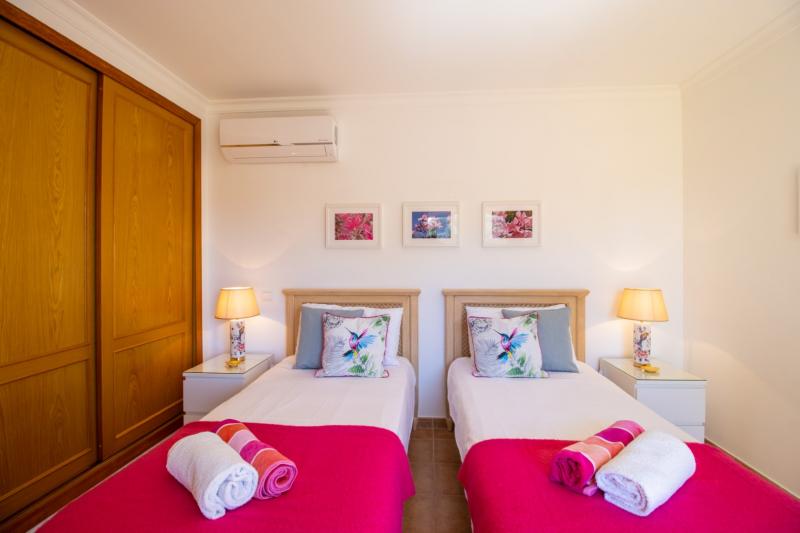 All bedrooms are ideally positioned to the north east or south east and are provided with the black-out curtains through out and built in wardrobes. The very generous master bedroom has an en-suite bathroom with twin basins, bath and shower over. A sliding door leads out to a Juliette balcony with fabulous views to the Monchique Mountains in the distance.