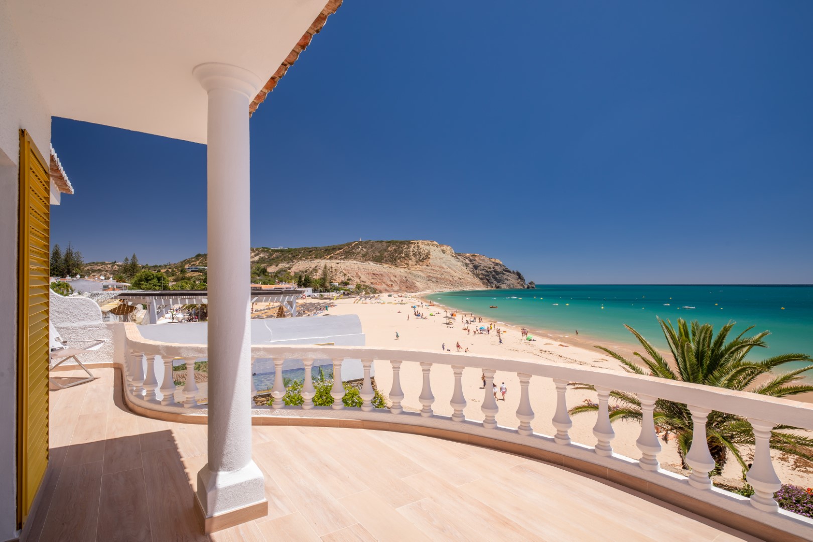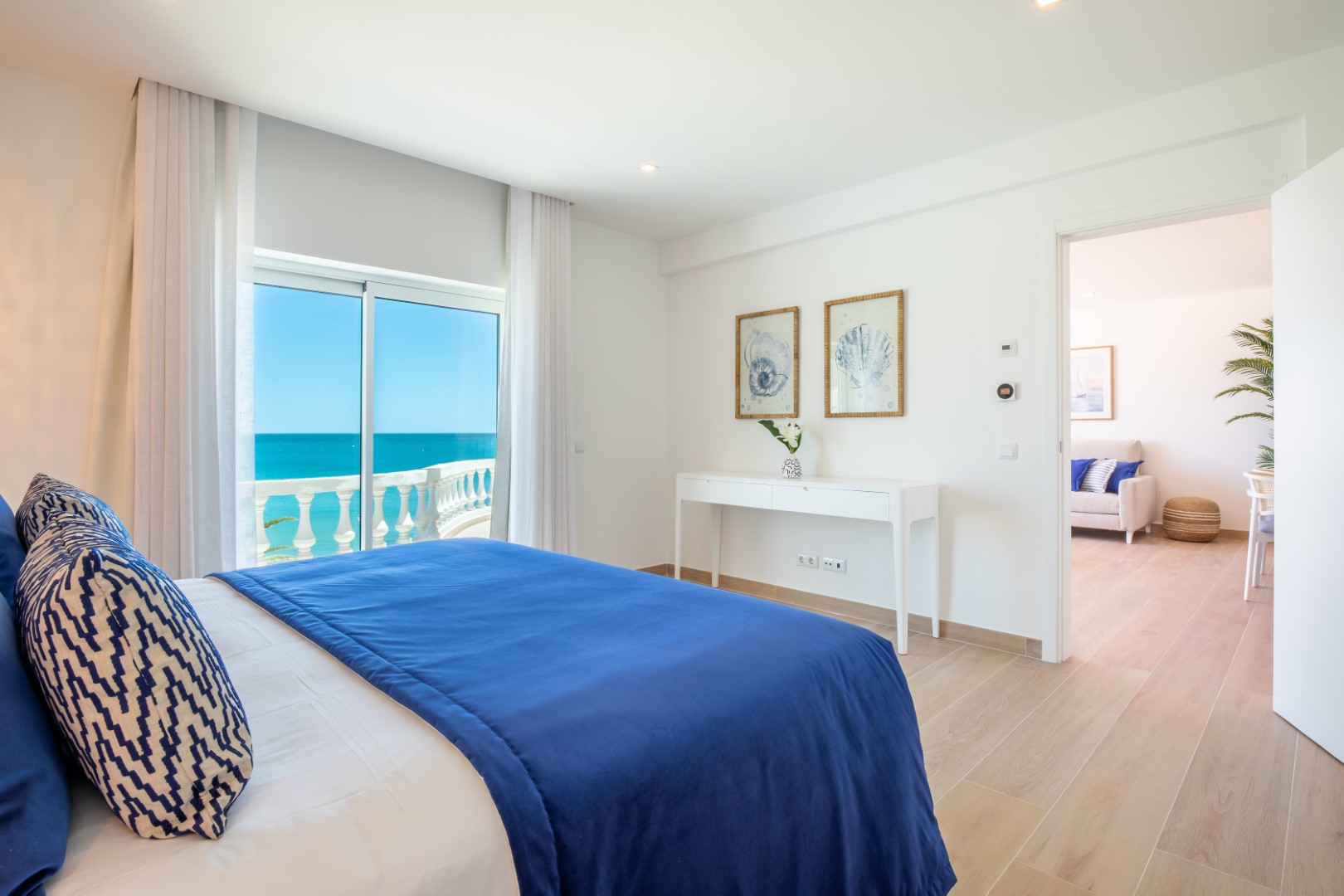 Just slide the doors inside the walls to access the balcony and enjoy the fantastic deep blue sea view of Praia da Luz.