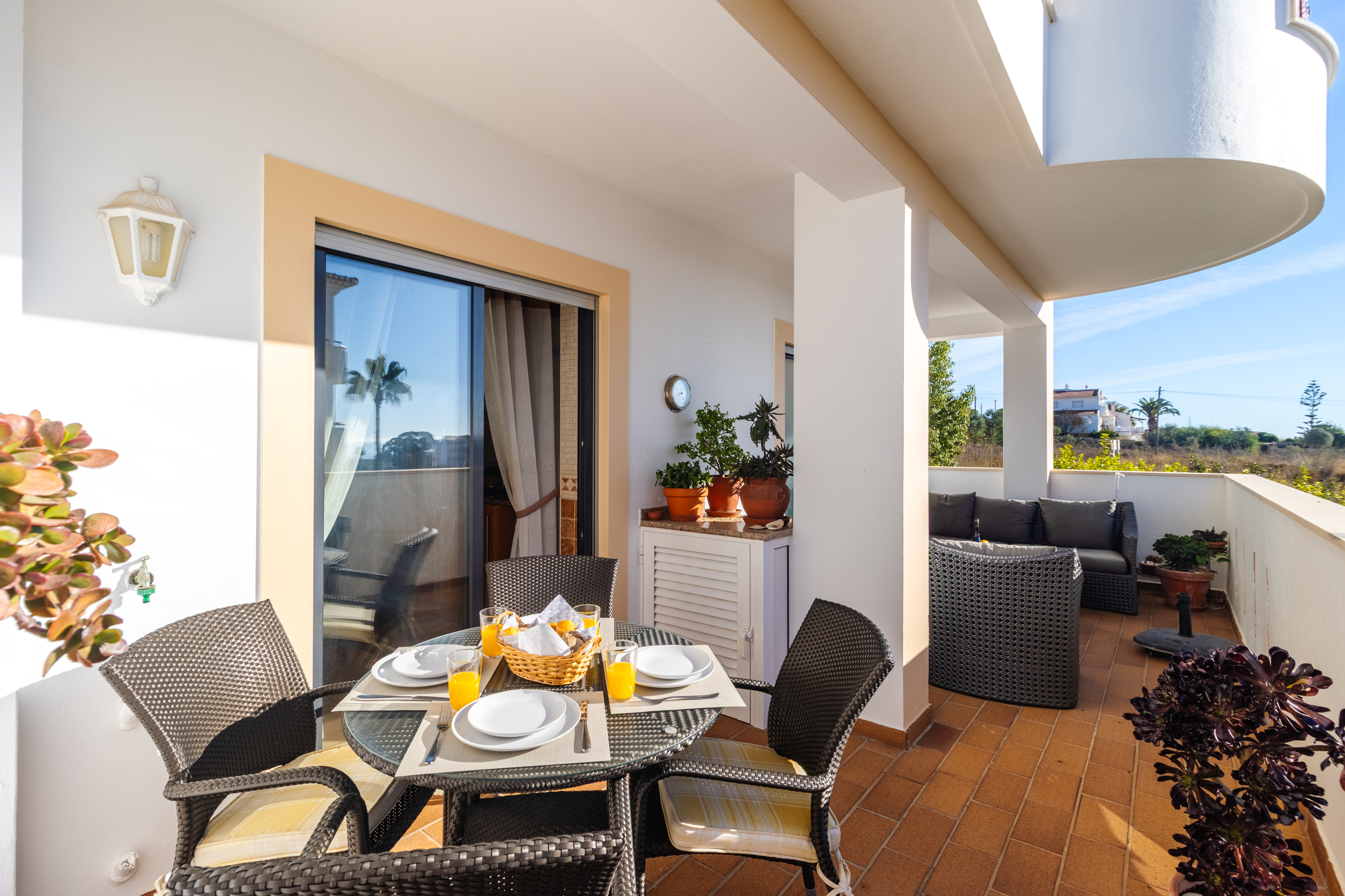 Welcome to this spacious and sun-filled 1-bedroom apartment located in a secure, gated condominium just a short stroll from the best of Lagos. With a large south-facing terrace offering distant ocean views, this is the perfect retreat for couples or small families.
