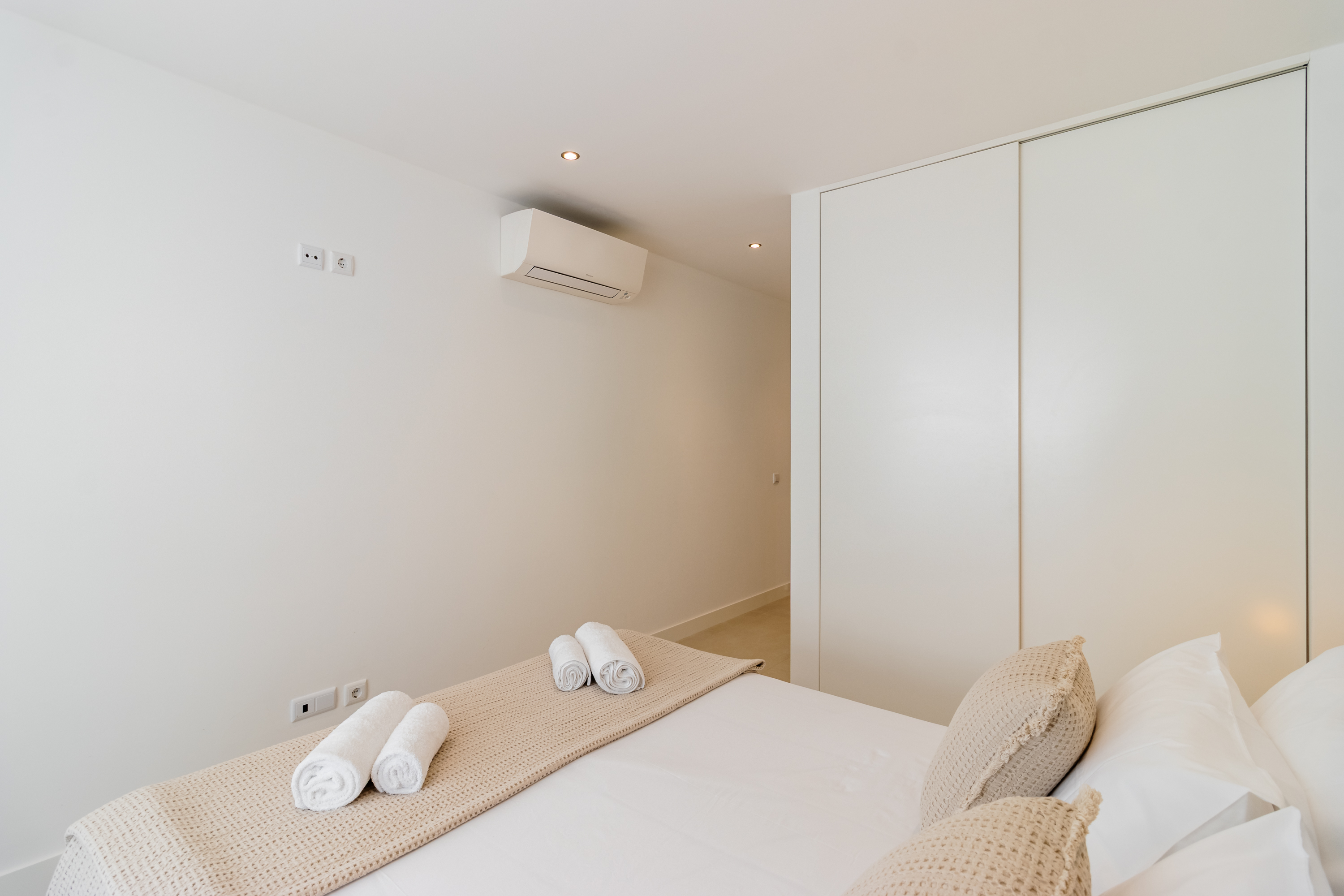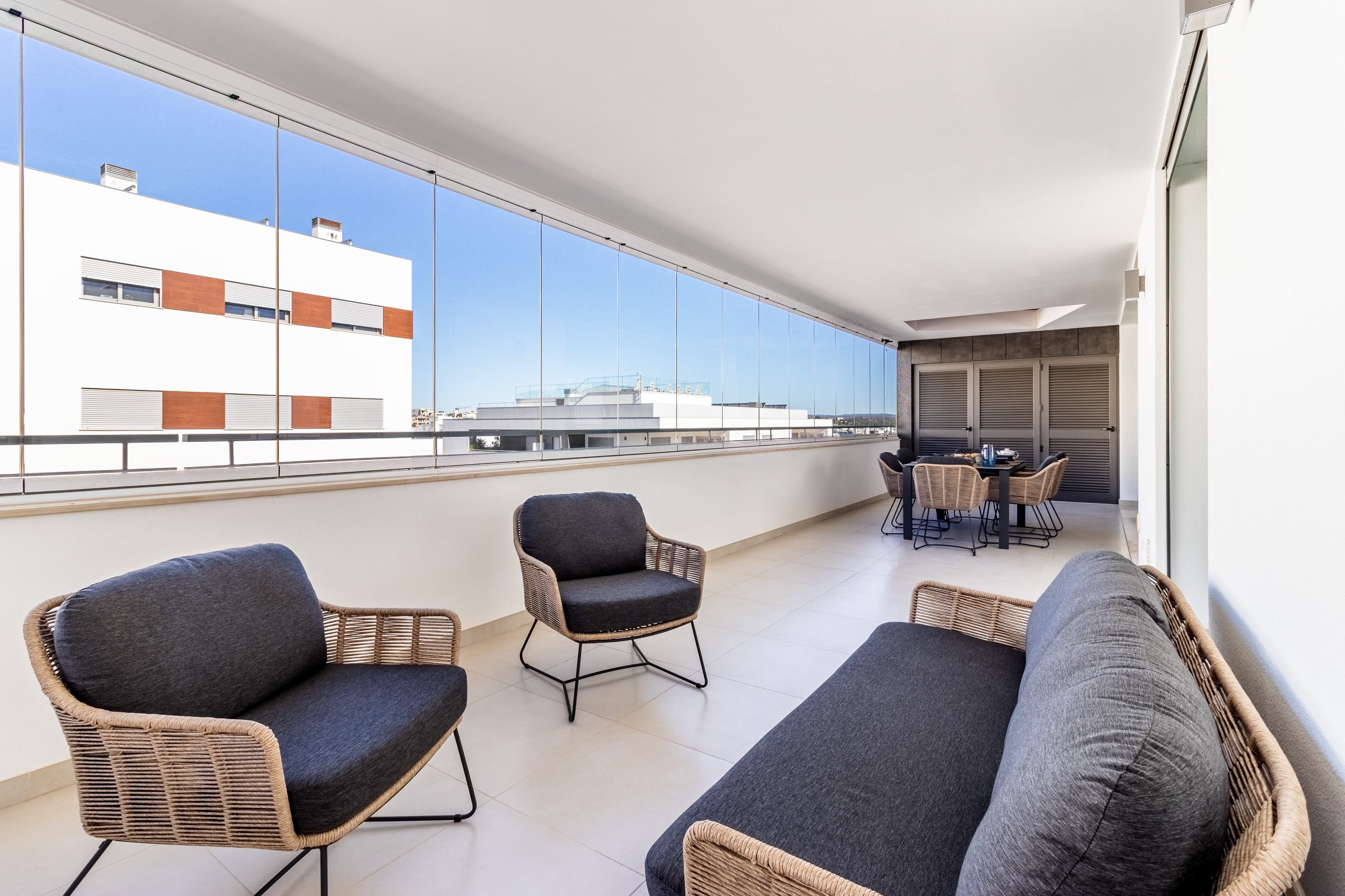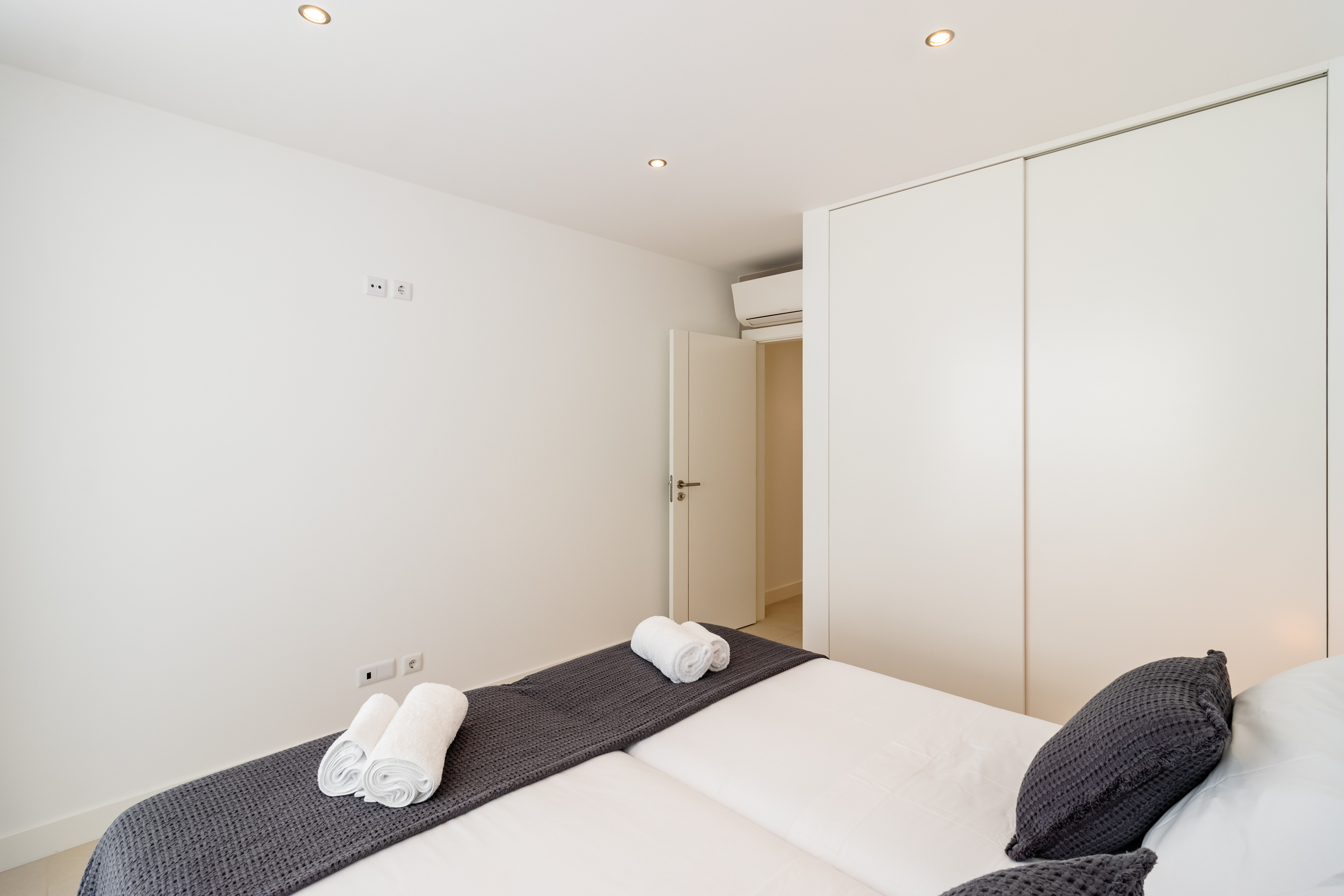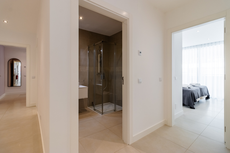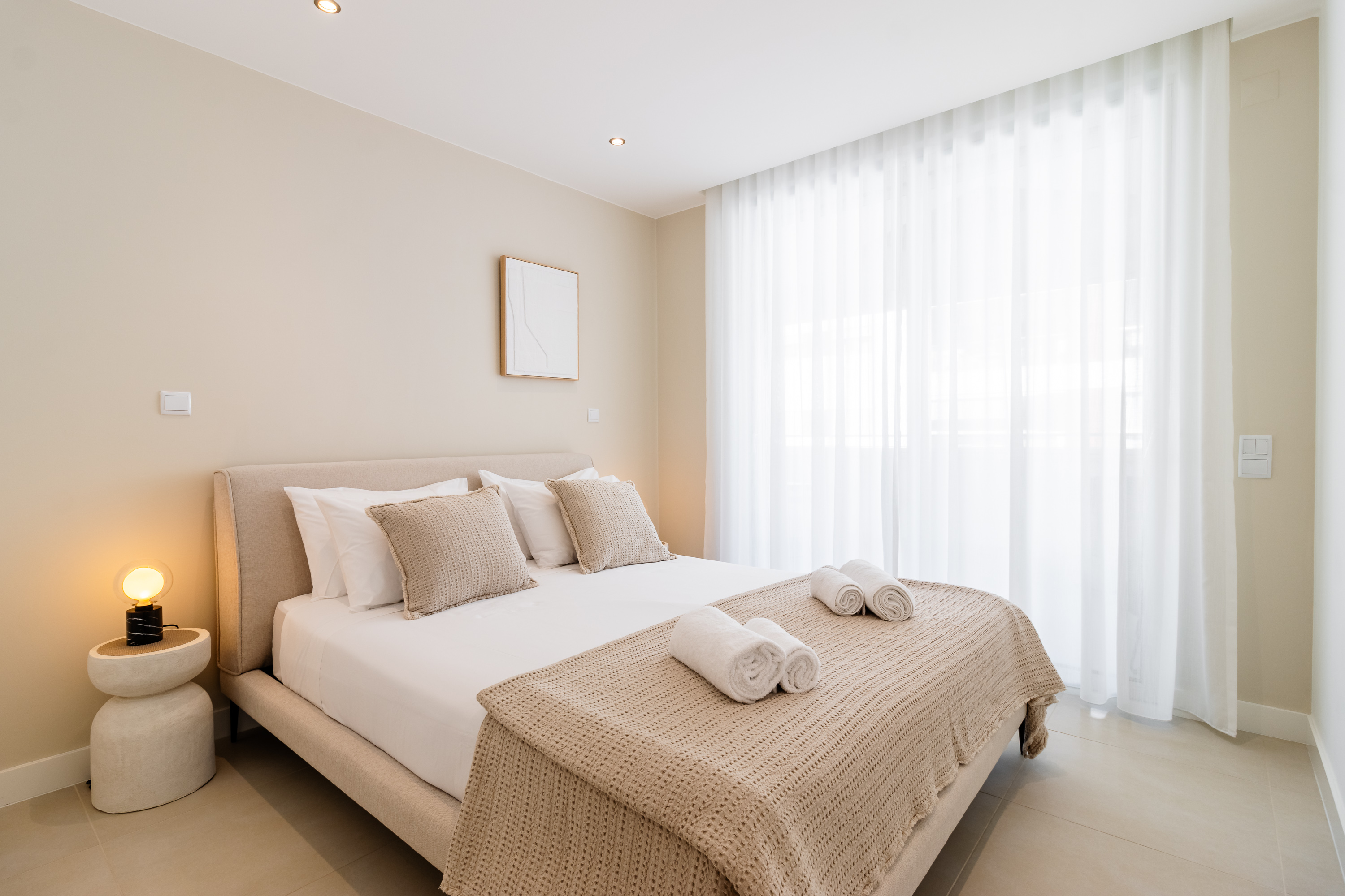 The apartment features three generously sized bedrooms, all thoughtfully designed and finished to a high standard. Each bedroom includes bespoke fitted wardrobes, electric shutters, and direct access to the terrace enhancing the indoor-outdoor living experience.
