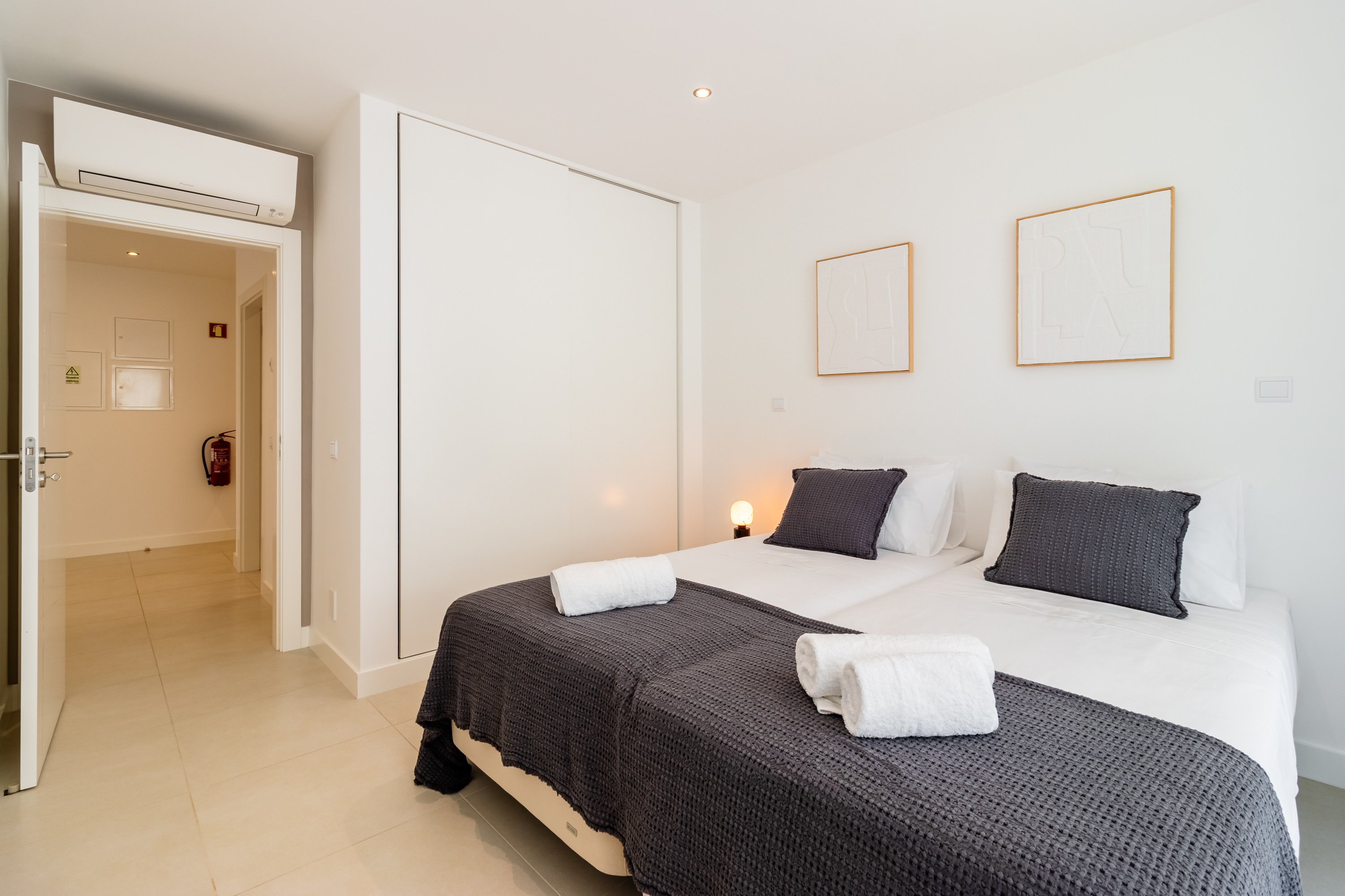 • Twin bedroom: Two single beds, served by a modern guest bathroom