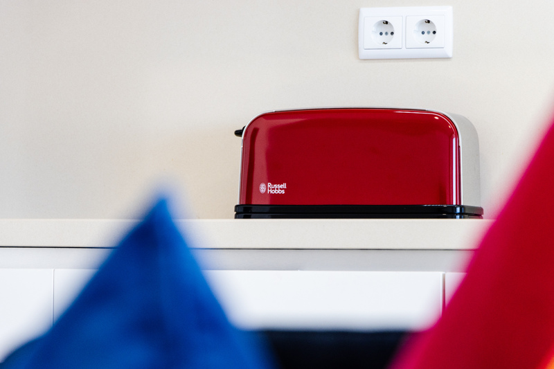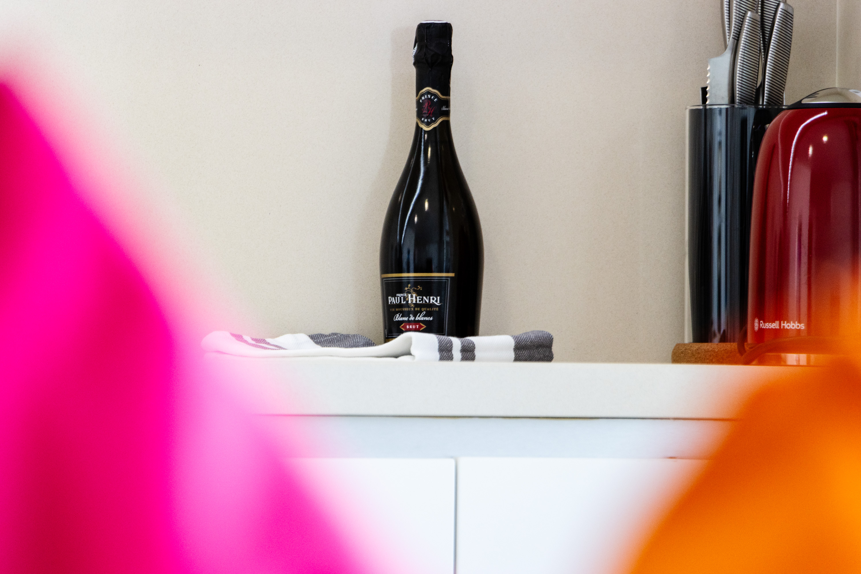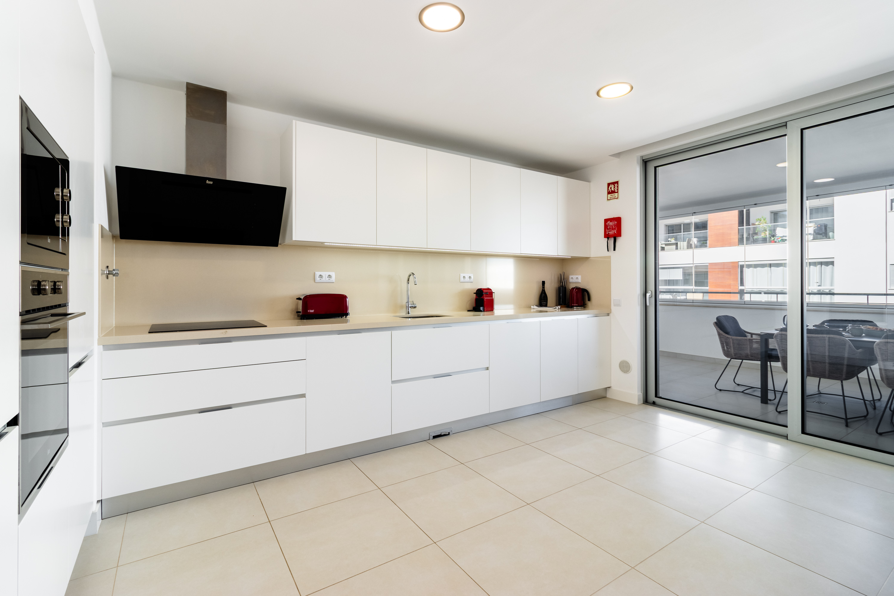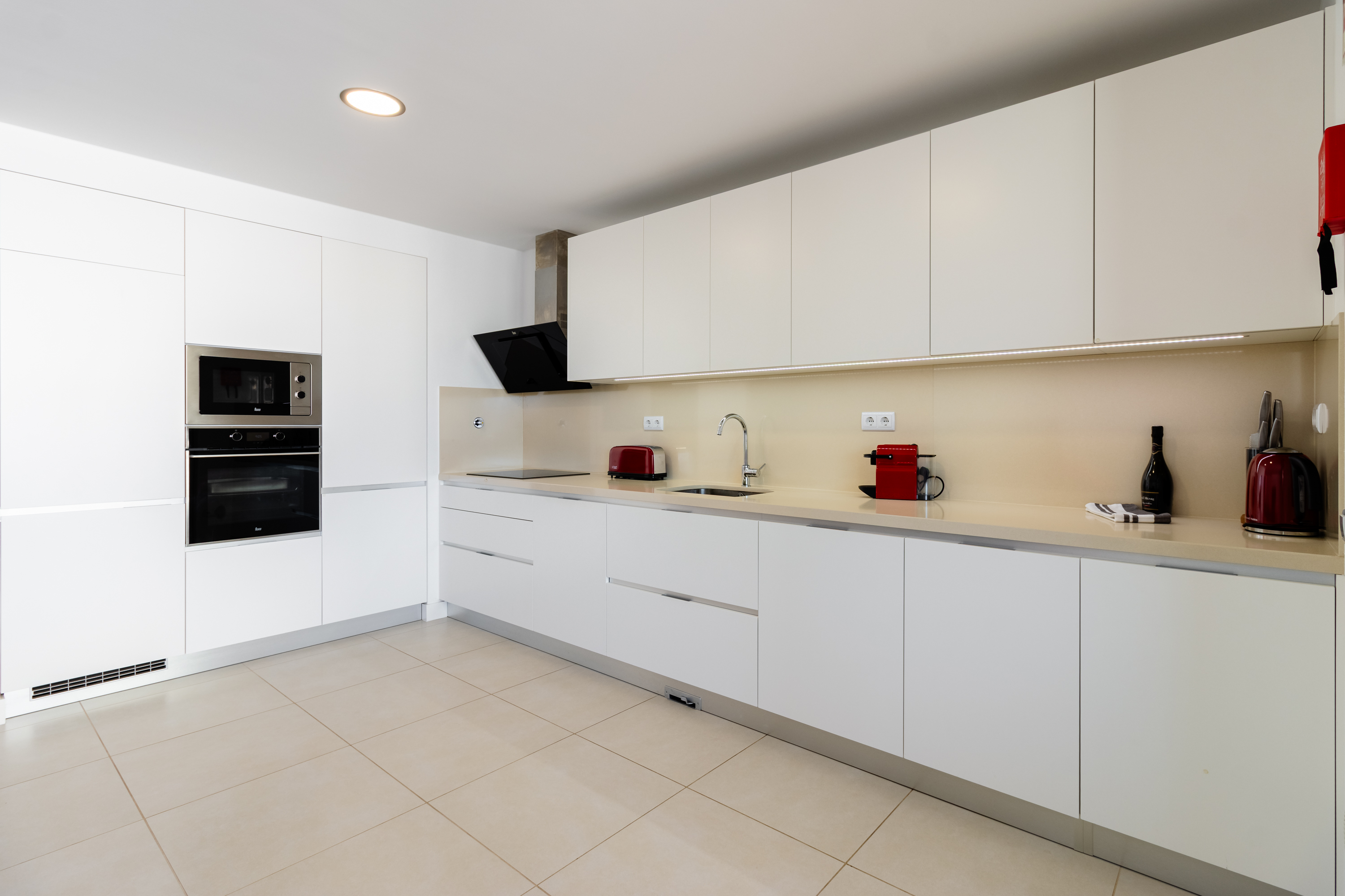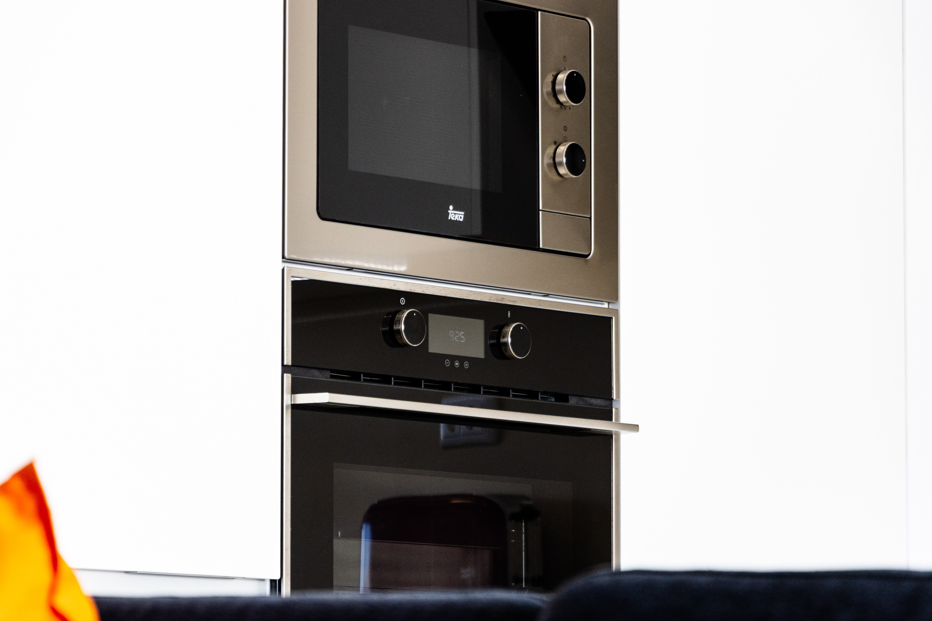 The modern kitchen is fully equipped with high-quality appliances, ideal for everything from light breakfasts to home-cooked meals.