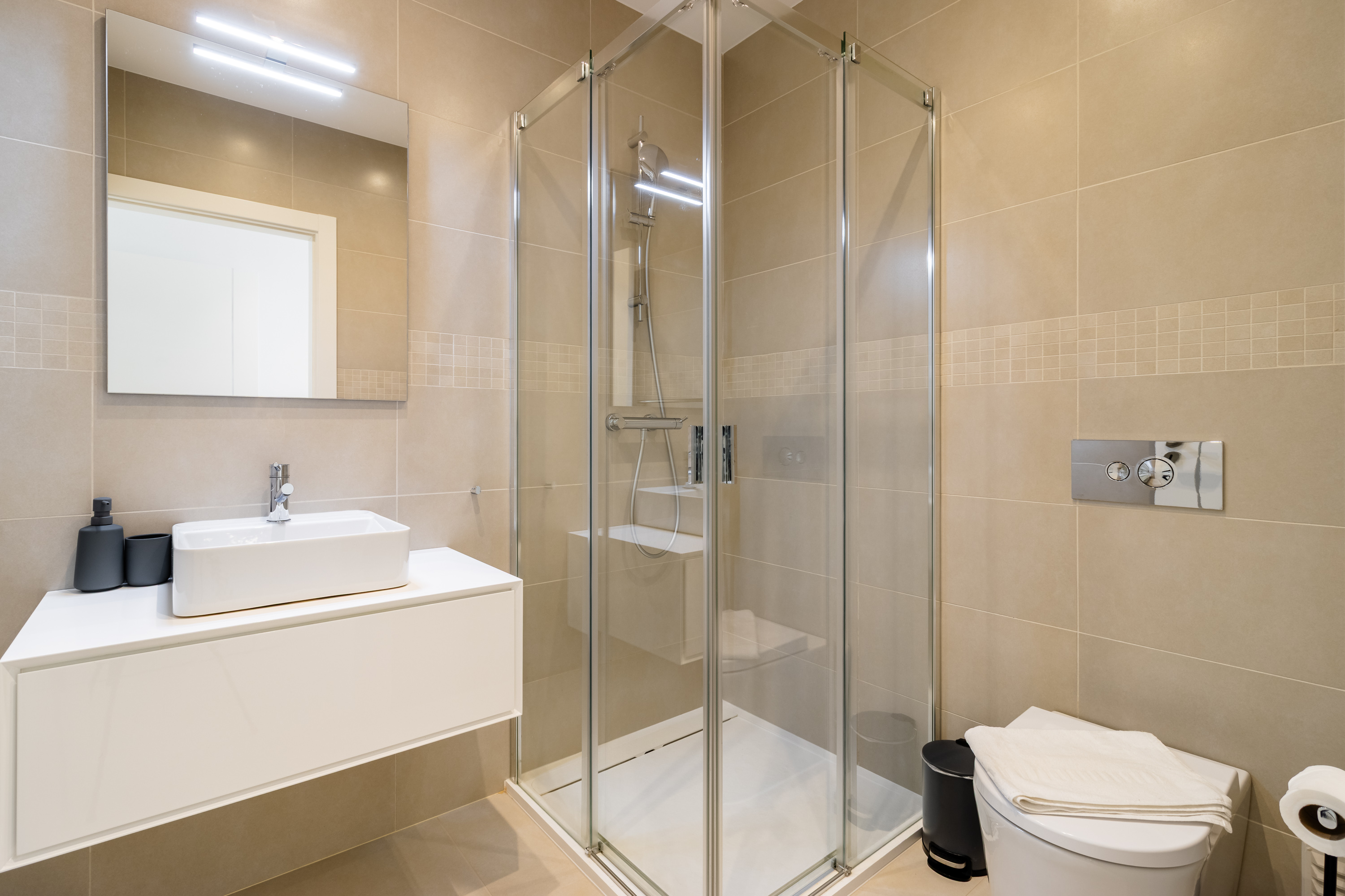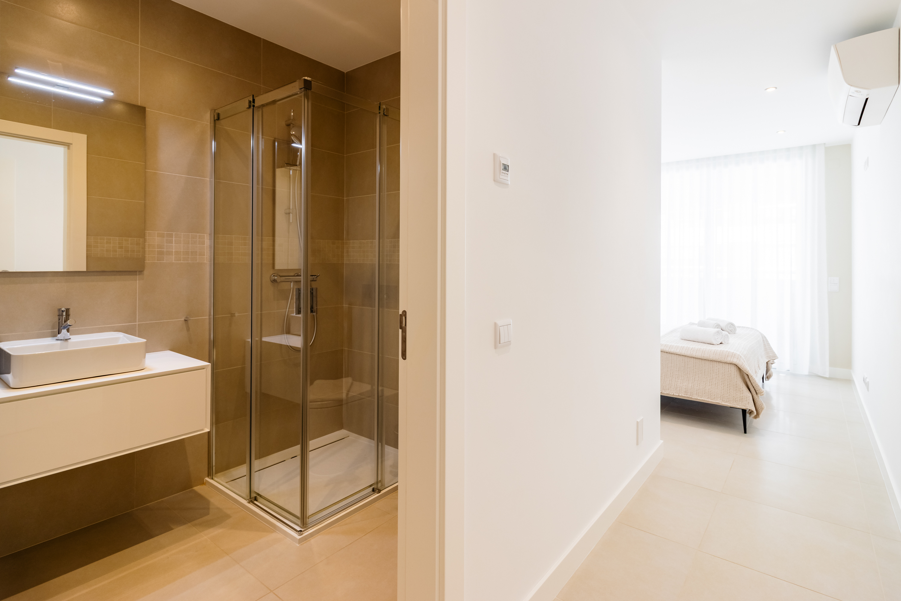 • Master bedroom: King-size bed (160×200 cm) with elegant en-suite bathroom and walk-in shower