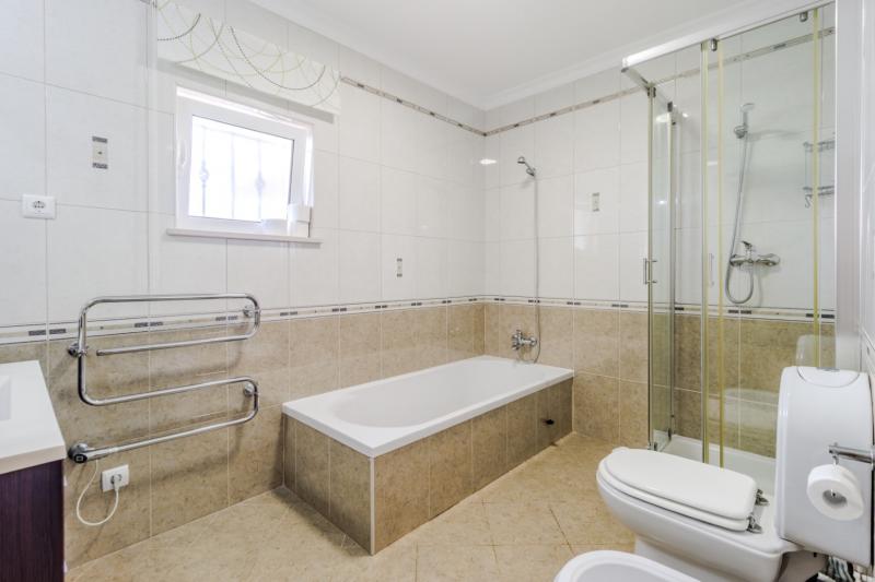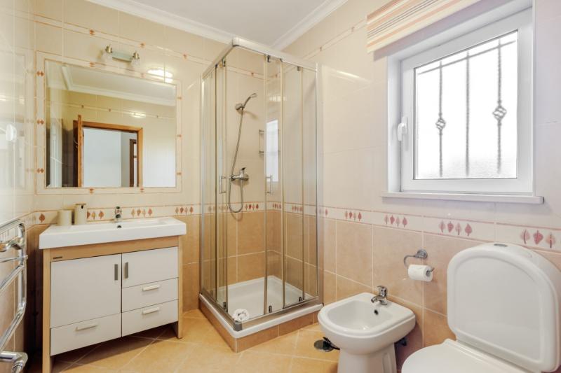 At either side of the ground floor are 2 master bedrooms, each with double beds, wall-mounted televisions and en-suite bathrooms (one of which is fantastically spacious with a shower and a corner bathtub). Between them are two twin bedrooms and a family bathroom with both a bath and a shower cubicle.
