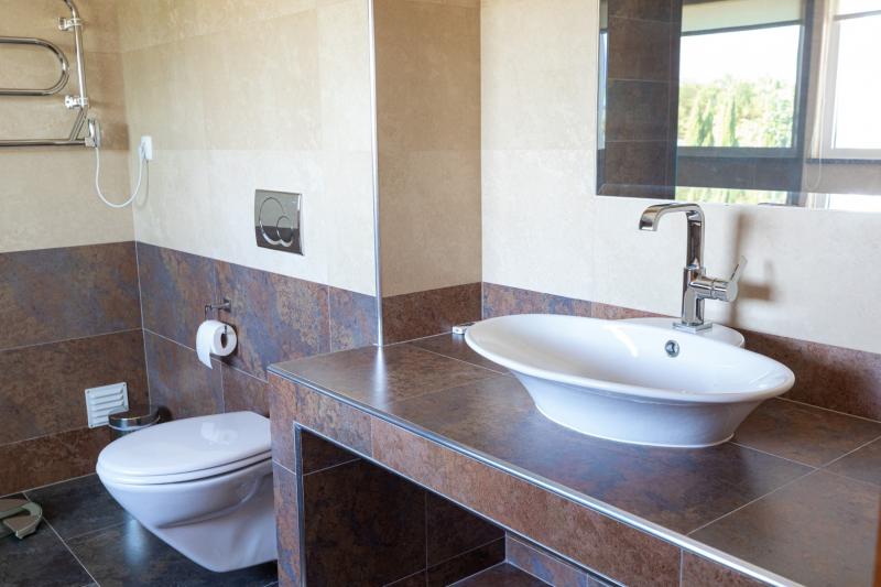 The space is fantastic, with all rooms leading to generous south-facing terraces, providing all-day sunshine. On the entrance level, you will find the open plan living / dining area with feature fireplace and a modern fully fitted kitchen with breakfast bar and a utility/laundry room, a double bedroom with en-suite bathroom, and a guest toilet. Upstairs are 2 more en-suite bedrooms, and down on the pool level can be found the 4th en-suite bedroom. The stairway and first floor hallway feature a glass ceiling which provides a wonderful flow of light throughout the villa.