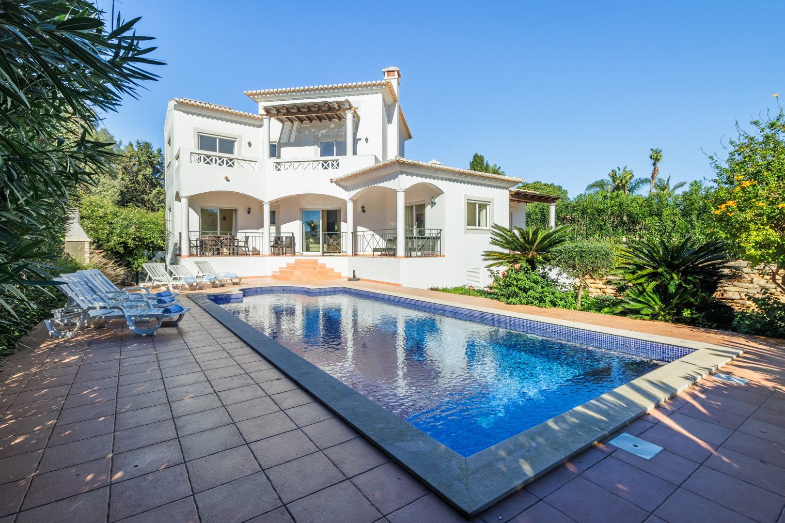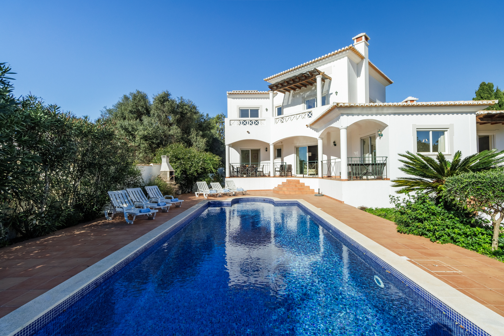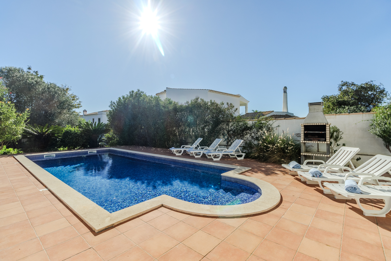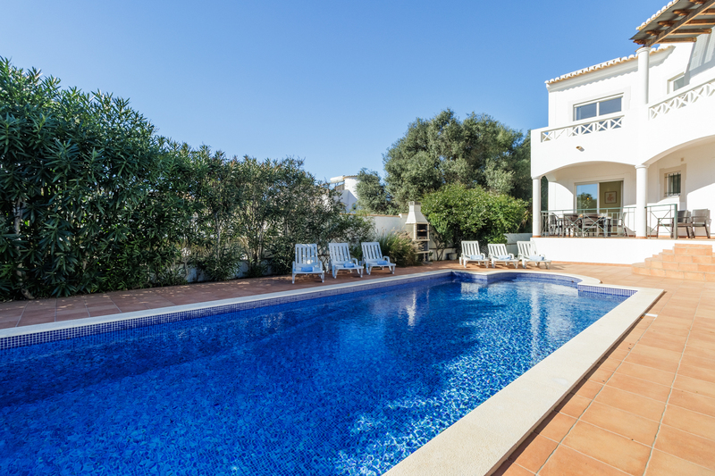 Paradise holiday spot for families with private swimming pool, spacious outdoor dining area with BBQ, and lush mature garden. Modern 4 bedroom villa with special layout, providing ideal sun exposure and use of the outdoor area. Walled and gated and set amongst other villas in a quiet area of Praia da Luz, short distance to restaurants, shops and the beach.