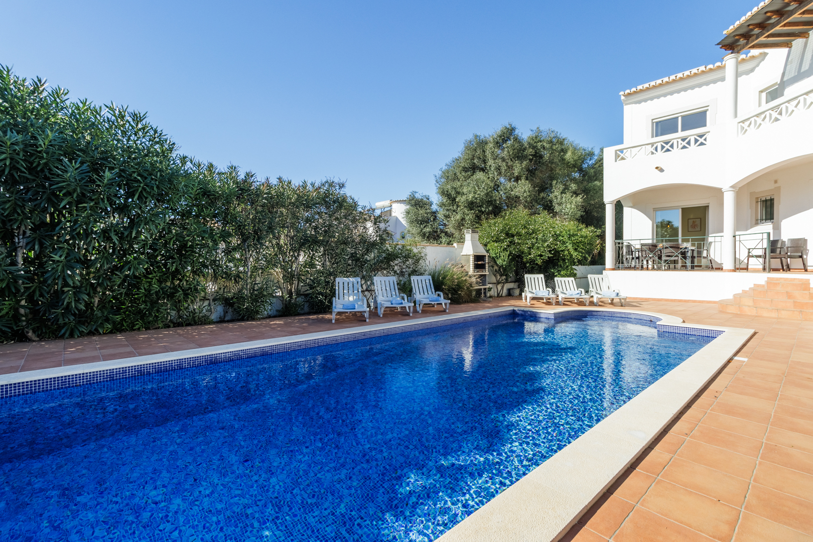 Built to a high standard, with modern finishes and airy spaces, the villa benefits from Air-Conditioned bedrooms, MEO cable TV, and a smart TV.
