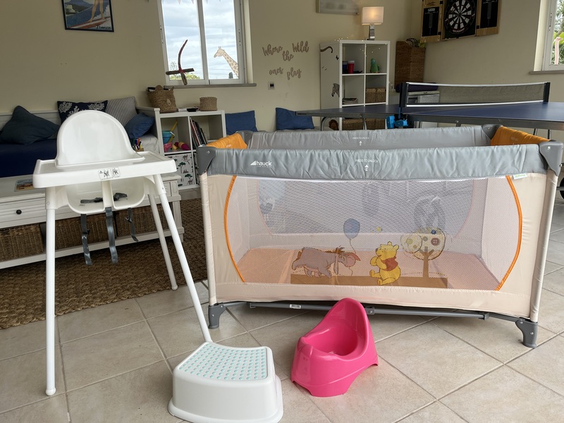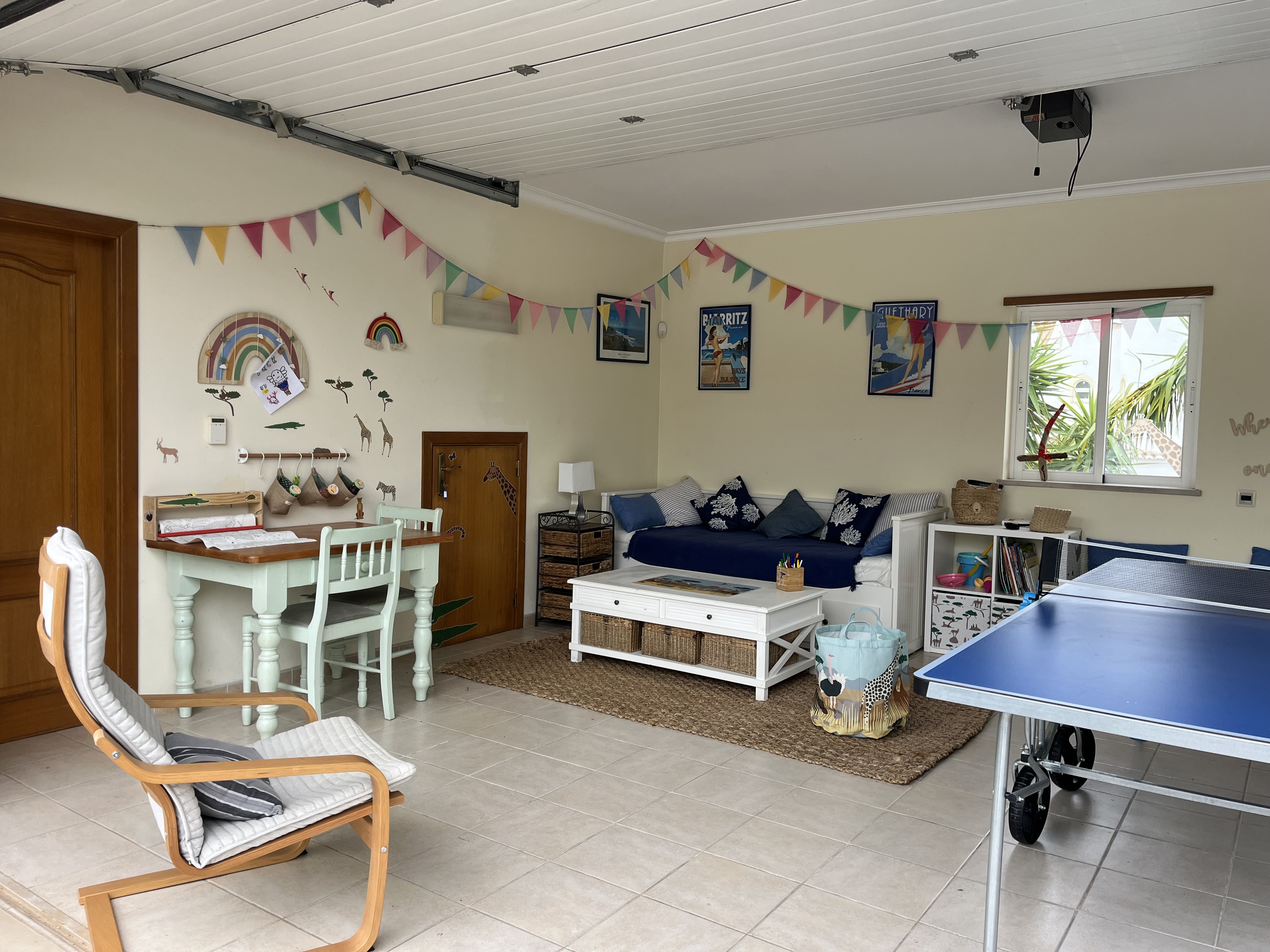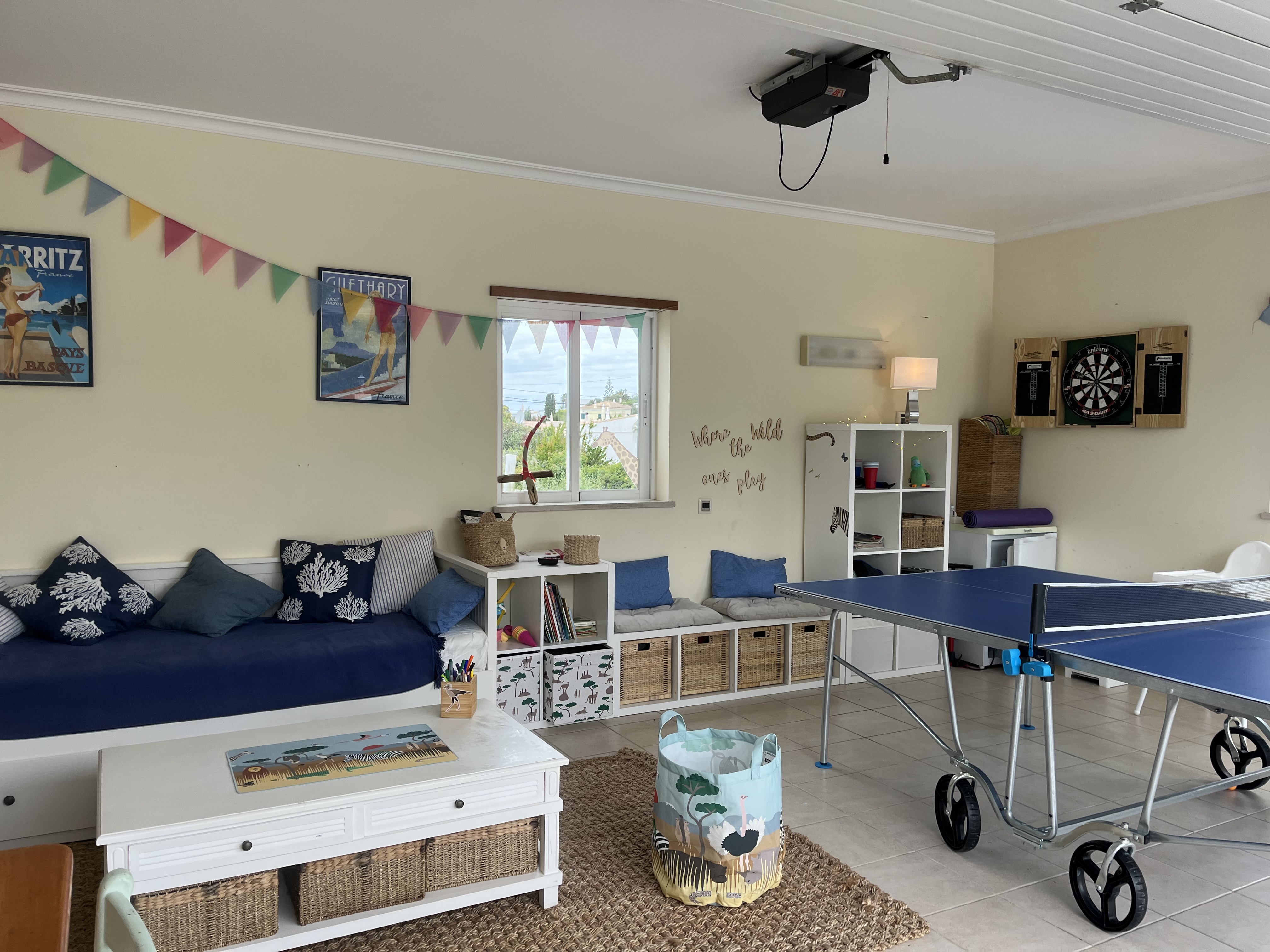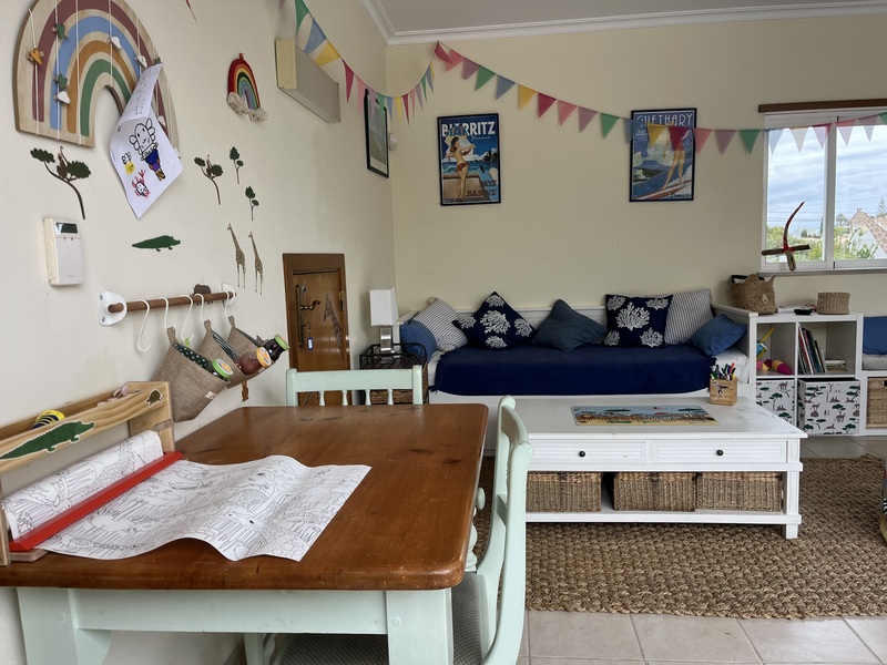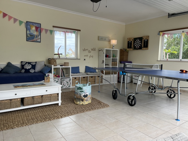 The property is perfectly suited for families, offering wonderful spaces for children to play and unwind. The garden provides a safe and inviting area to explore, complete with a charming pond that adds to its appeal. For additional entertainment, the converted garage serves as a dedicated playroom, featuring a ping pong table, games, and plenty of activities to keep younger guests engaged. This secure and shaded space is ideal for children to relax and enjoy their own time after a day in the sun, making it a truly family-friendly retreat.