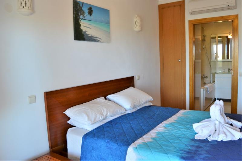 Una habitación doble con balcón y baño privado con bañera de hidromasaje y ducha. Habitación doble. Más cuarto de baño. Armarios empotrados. Cocina totalmente equipada con lavavajillas y lavadora.