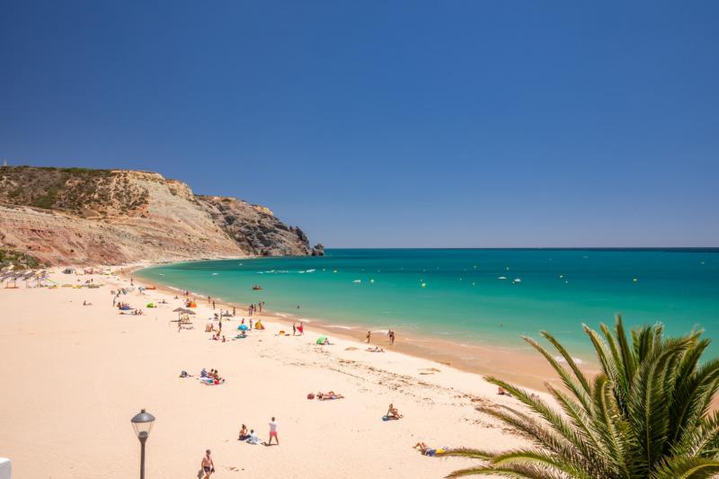 The beach has a promenade that runs almost the entire length of the beach, lined with palm trees which provide a pleasant shade from the sun and a viewpoint to admire the beautiful and famous Portuguese cliffs. The beach itself is safe and guarded, and the sea is calm. If necessary, the place also has accessibility, with mobility and support.