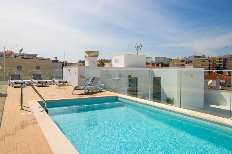 Guests can also enjoy the rooftop pool, complete with a sun deck and loungers—ideal for soaking up the Algarve’s abundant sunshine.